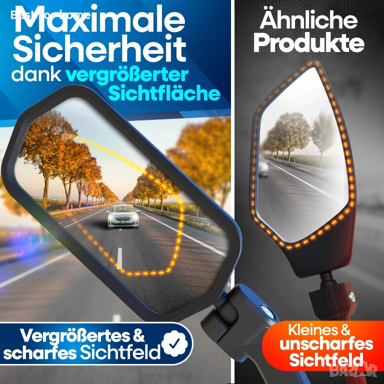 Перфектна видимост – с до 70% по-голяма огледална повърхност от другите огледала за кормило за велосипеди и истинско стъкло ProVision 2.0 с антирефлексно и антиотблясъчно покритие, винаги имате кристално ясна видимост и максимална безопасност.
