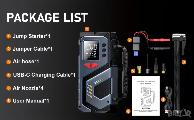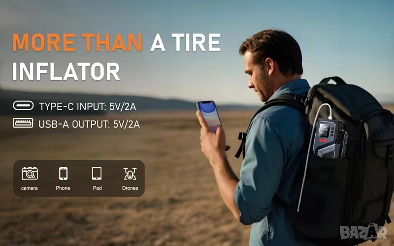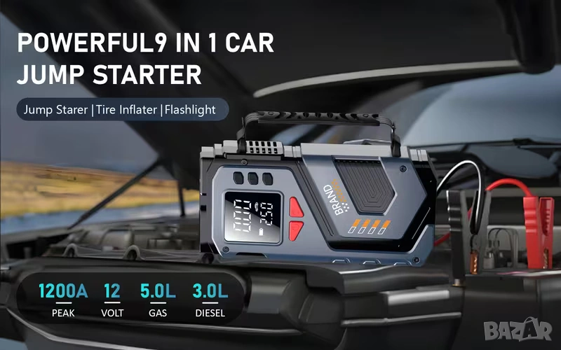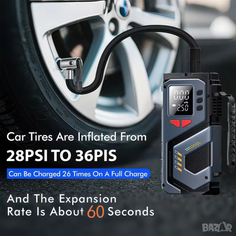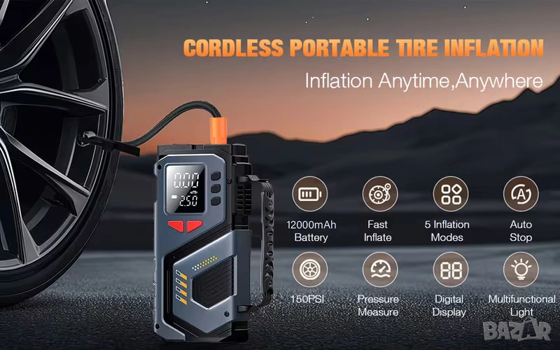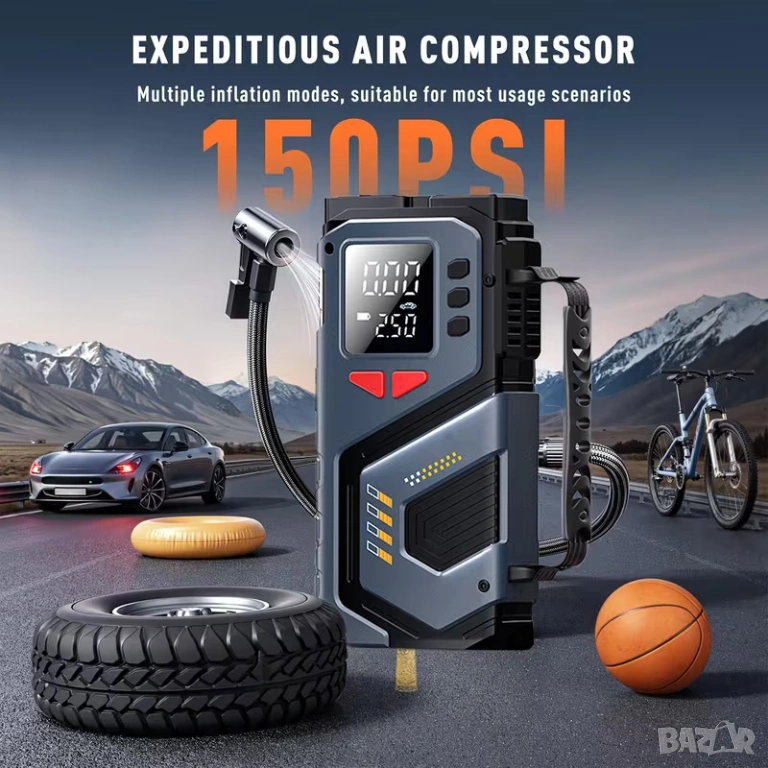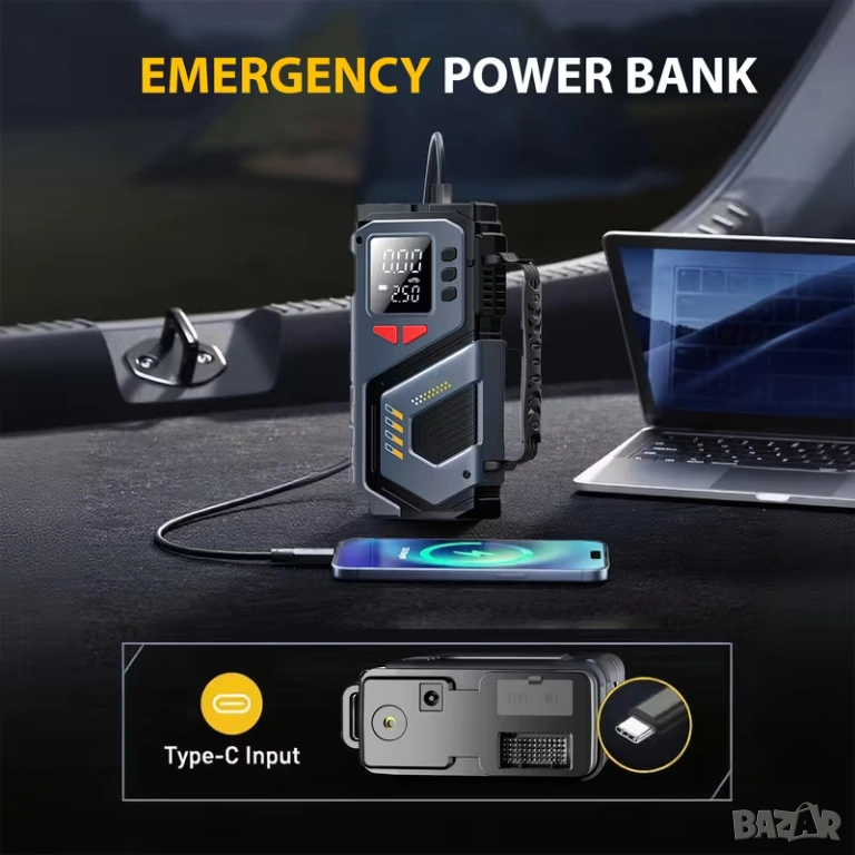 Комбиниран Jump Starter (бичѐ), Power Bank и 150 PSI компресор