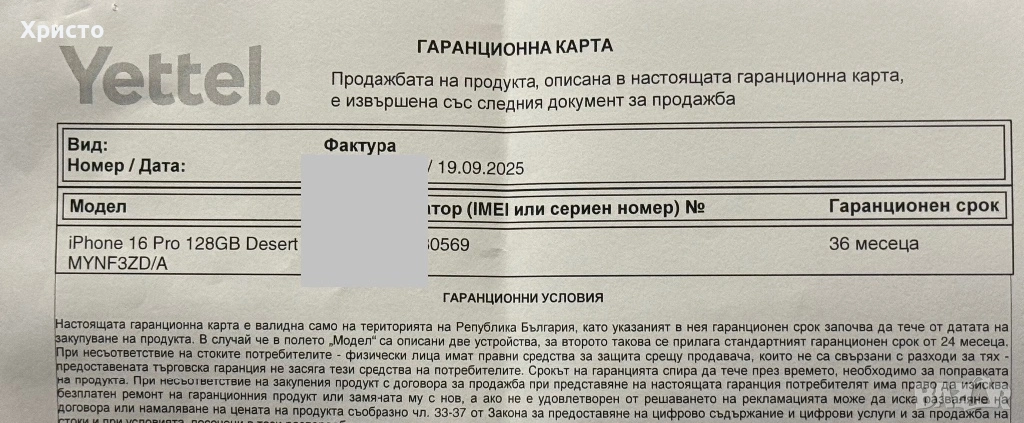 Телефонът е в перфектно състояние, неразличим от нов. Много запазен и използван внимателно, без забележки. Работи безупречно, както и всички негови функции. Устройството работи с всички оператори и няма никакви ограничения. Закупен е Септември 2025г с 36 месеца гаранция. Животът на батерията и циклите на зареждане могат да се видят на една от снимките, за да се види реалното състояние. Телефонът се продава в пълен комплект, както е закупен оригинална кутия, документи, кабел за зареждане, оригинален адаптер, защитно гърбче. Без бартери!!!