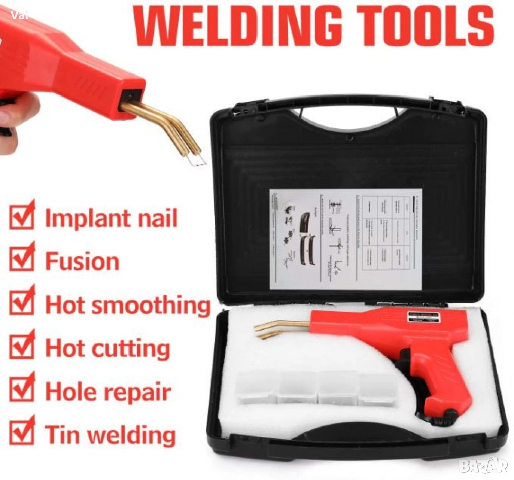 Този пистолет за лепене на пластмаса е идеален за разнообразни приложения, включително ремонт на автомобилни пластмасови части, домашна електроника, кухненски уреди, и всякакви други модерни продукти, изработени от пластмаса. Независимо дали трябва да заварите пластмаса, да поправите дупка, да запоите с калай или да изгладите повърхност, този инструмент ще ви предостави всичко необходимо за успешен ремонт.