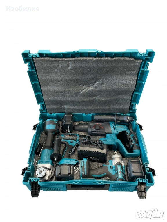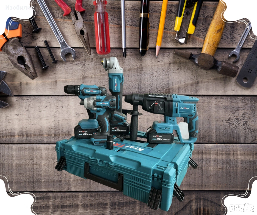С този комплект от акумулаторен перфоратор, ъглошлайф, гайковерт и винтоверт ще имате всичко необходимо за изпълнение на разнообразни задачи с максимална ефективност и прецизност. С три мощни батерии и мултифункционално зарядно устройство, вие ще бъдете винаги готови за работа. Поръчайте сега и се възползвайте от всички предимства, които този висококачествен комплект предлага!