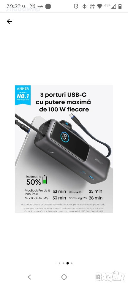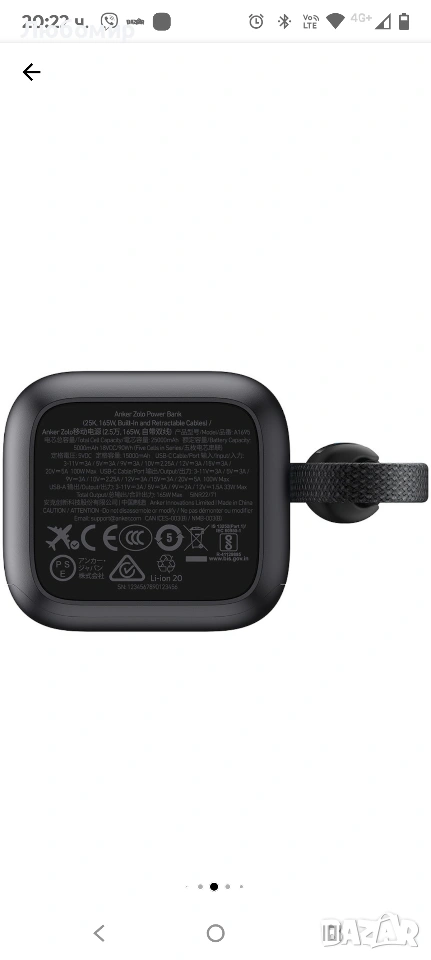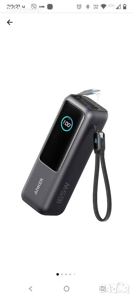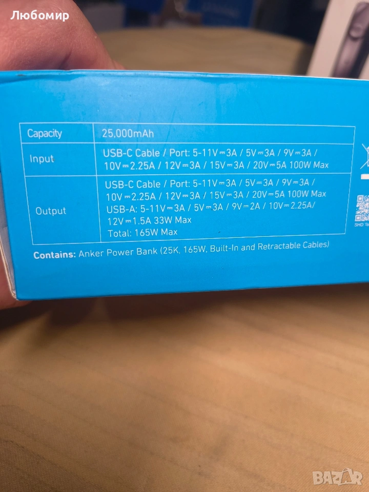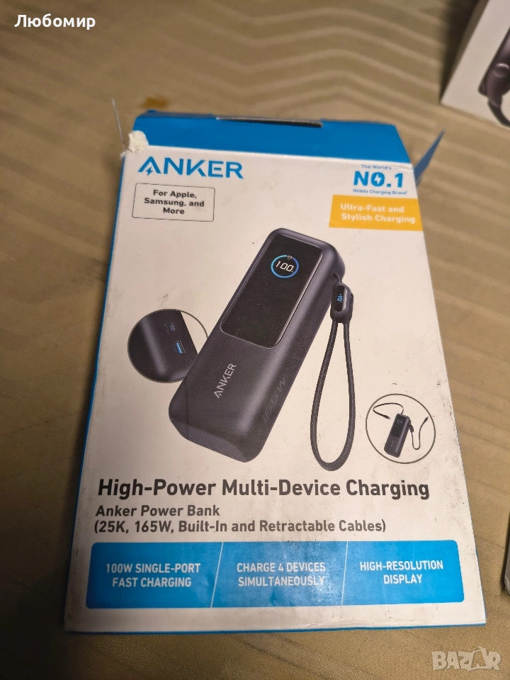 Външна батерия Anker (25K, 165W, вградени и прибиращи се кабели), ръководство за потребителя.