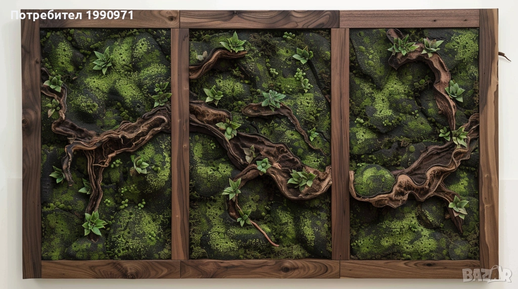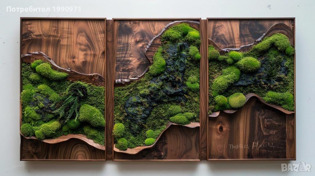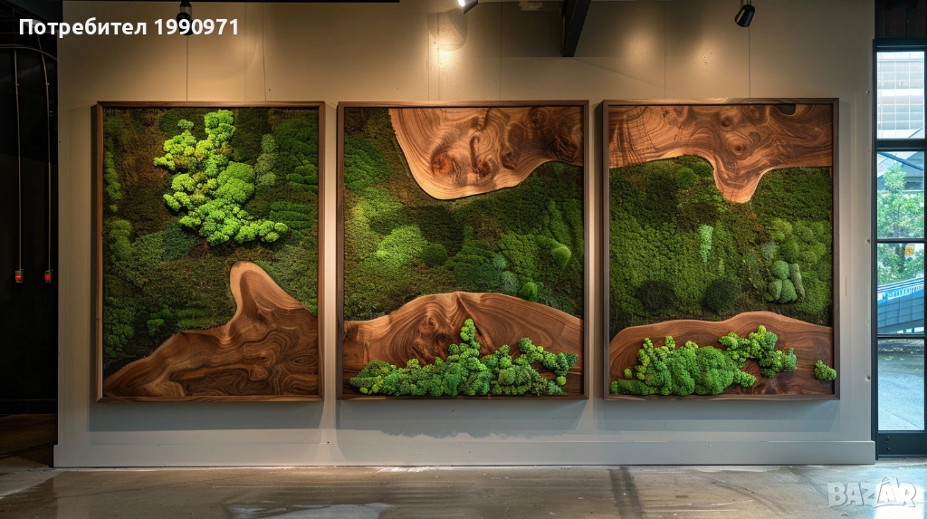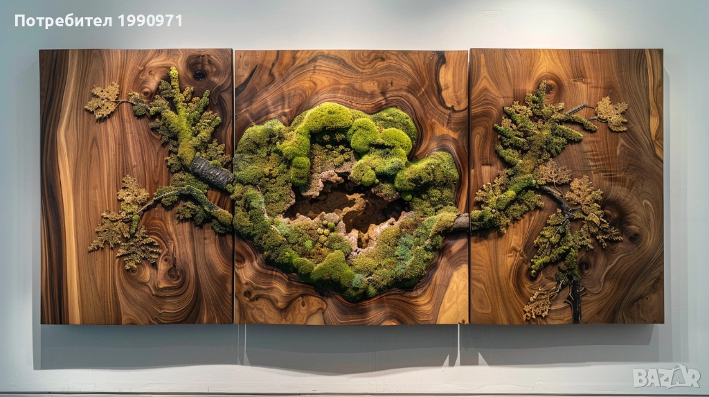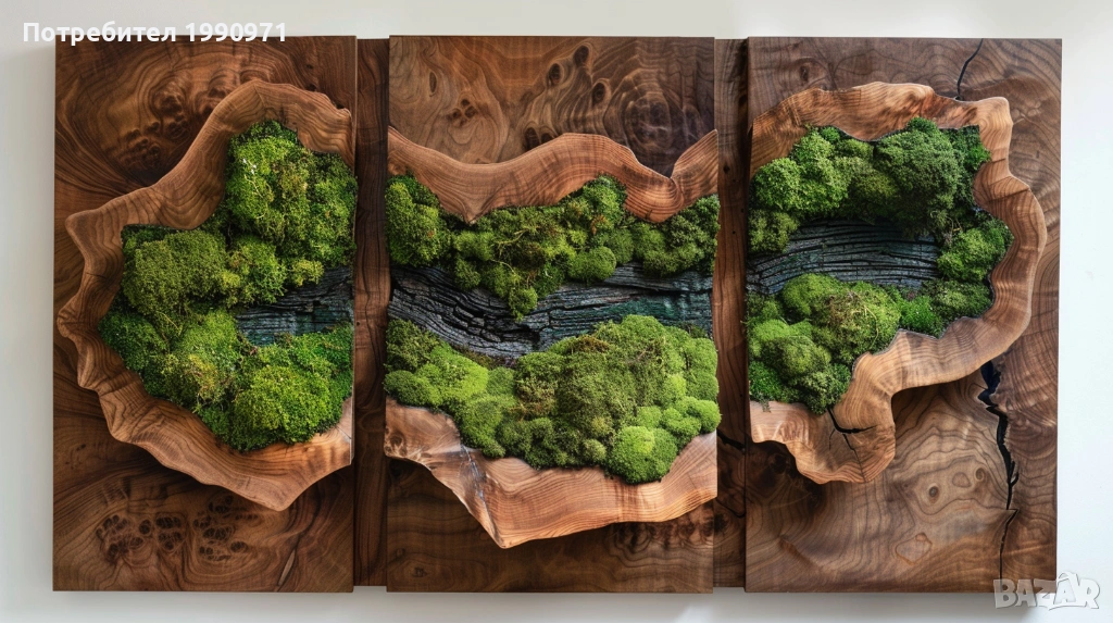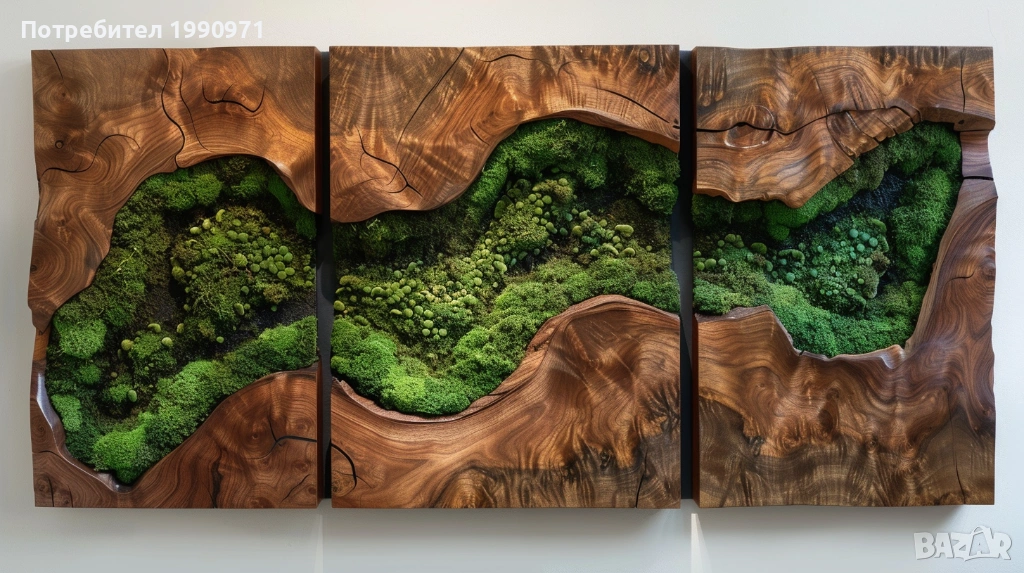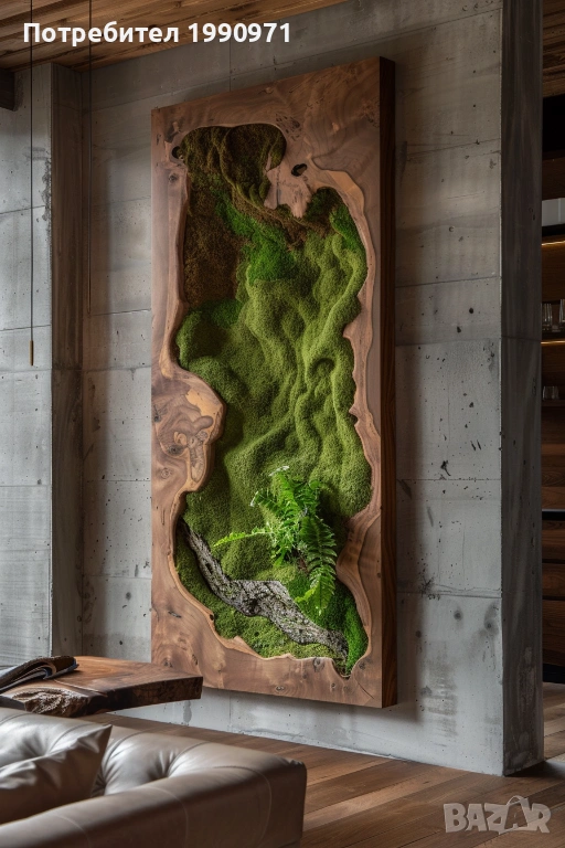 Уникално дървено пано за стена с исландски мъх. Ръчно изработен декоративен акцент, който внася естествена красота, свежест и уют във всеки интериор. 🌿🪵