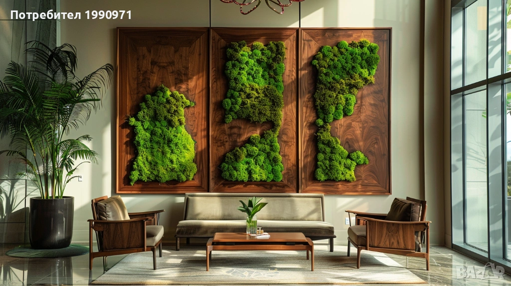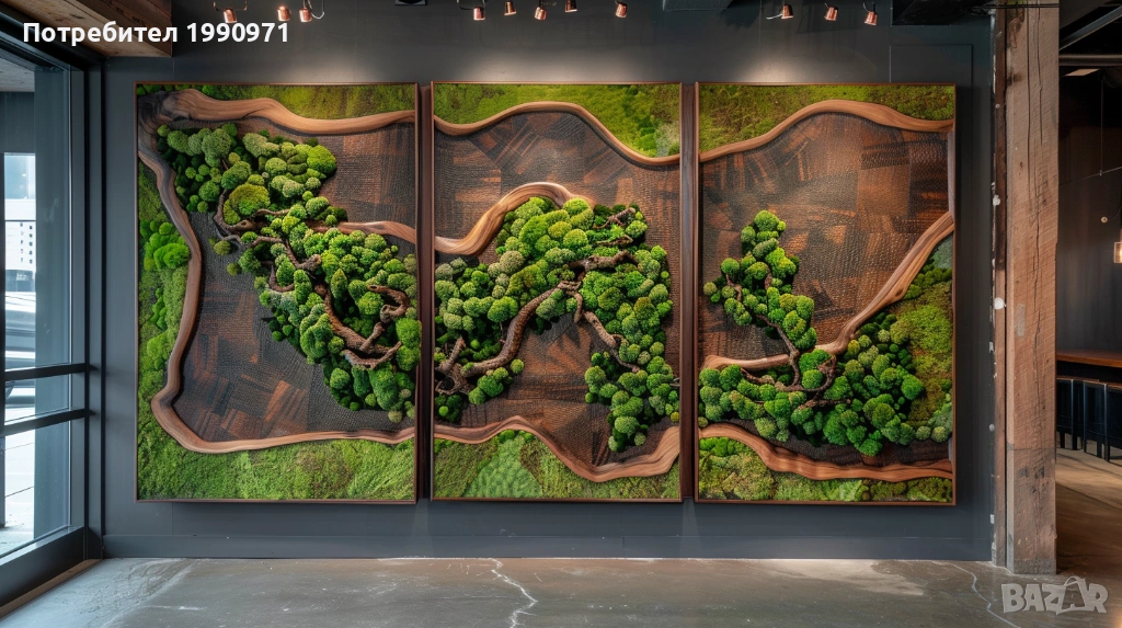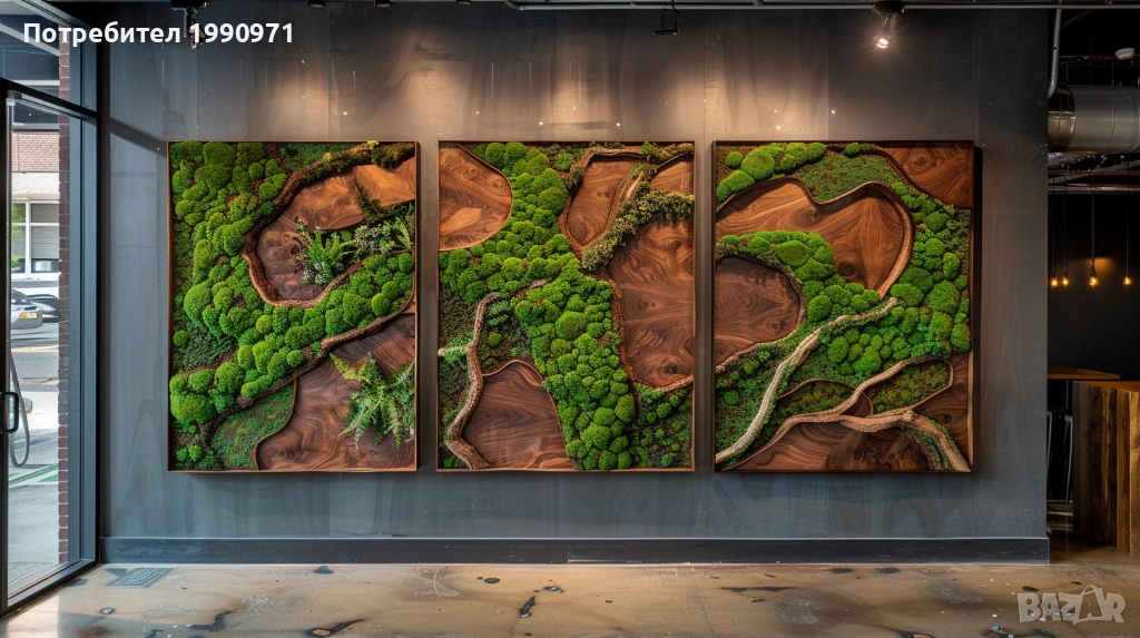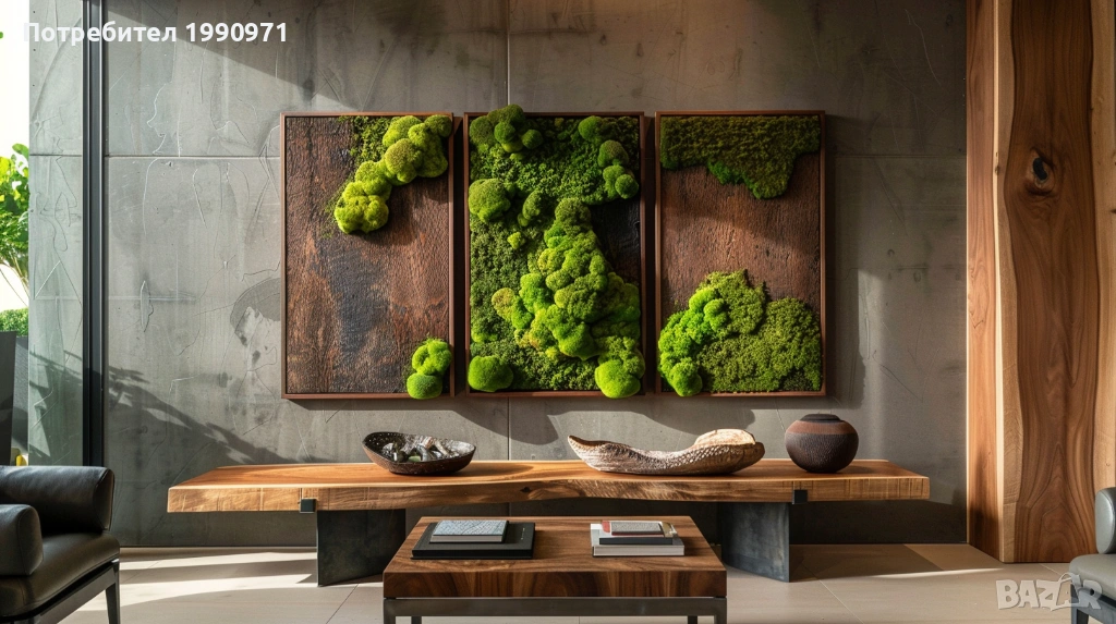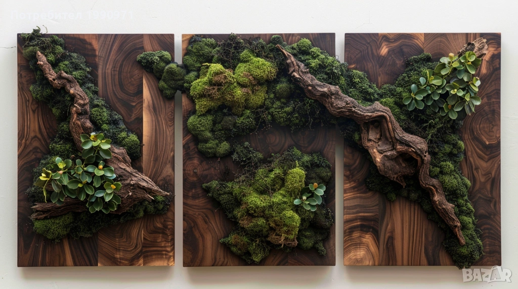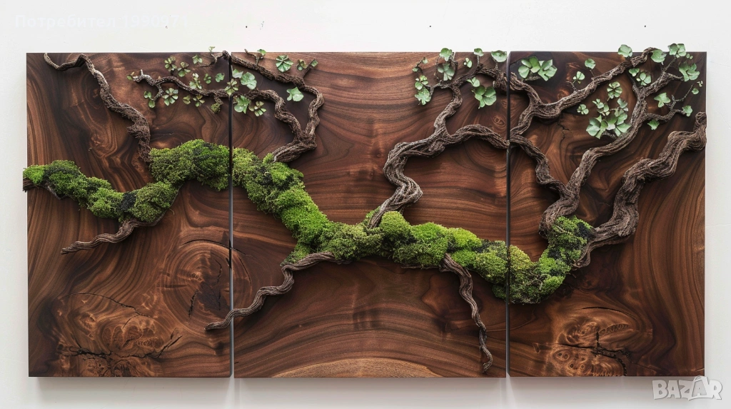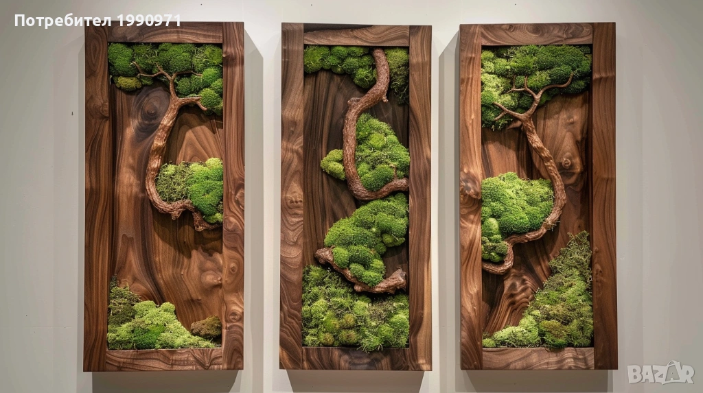 Уникално дървено пано за стена с исландски мъх. Ръчно изработен декоративен акцент, който внася естествена красота, свежест и уют във всеки интериор. 🌿🪵