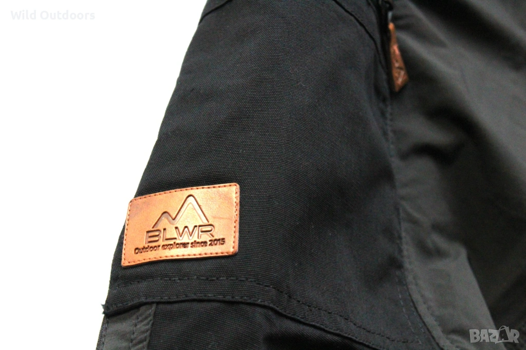 Разполага с два предни джоба, заден с цип и два с ципове на бедрата.