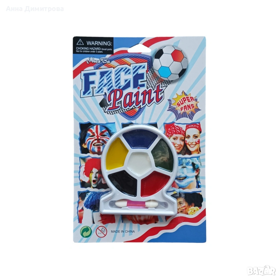 Комплект безвредни боички за лице и тяло. Цветовете са наситени и трайни, нанасят се лесно и покриват плътно.