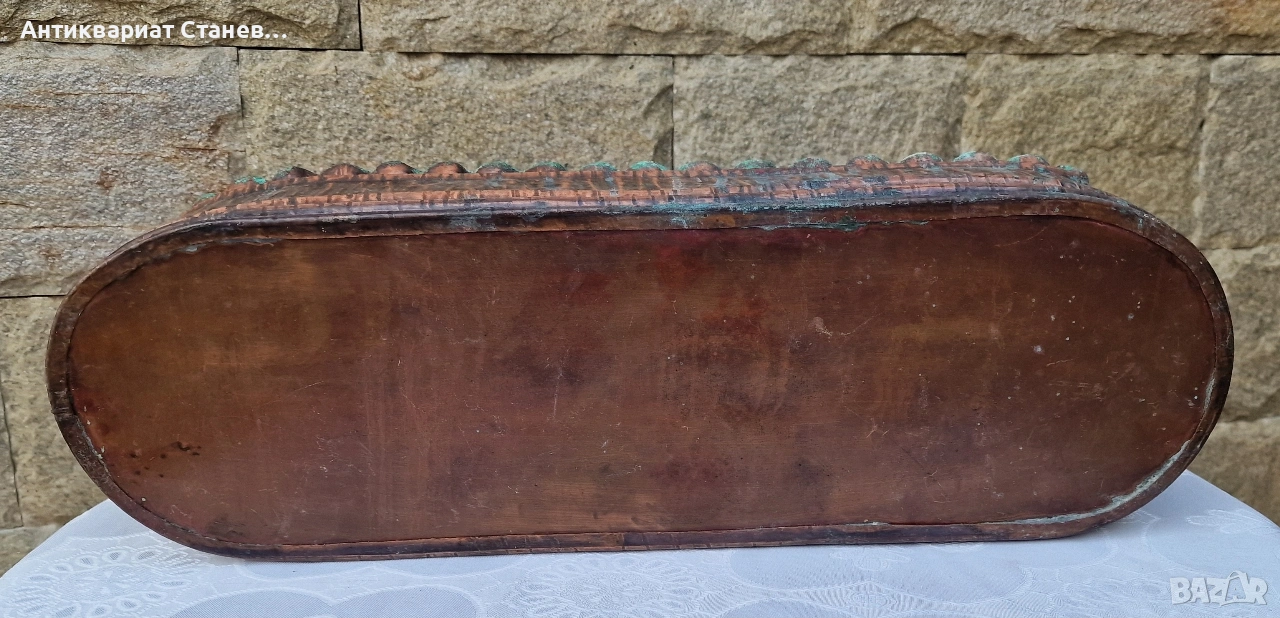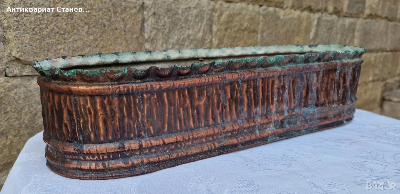 🔥 Красива голяма медна кашпа с впечатляваща форма и автентична старинна визия. Топлият меден цвят в комбинация със зелената патина създава уникален винтидж характер, който веднага привлича погледа.