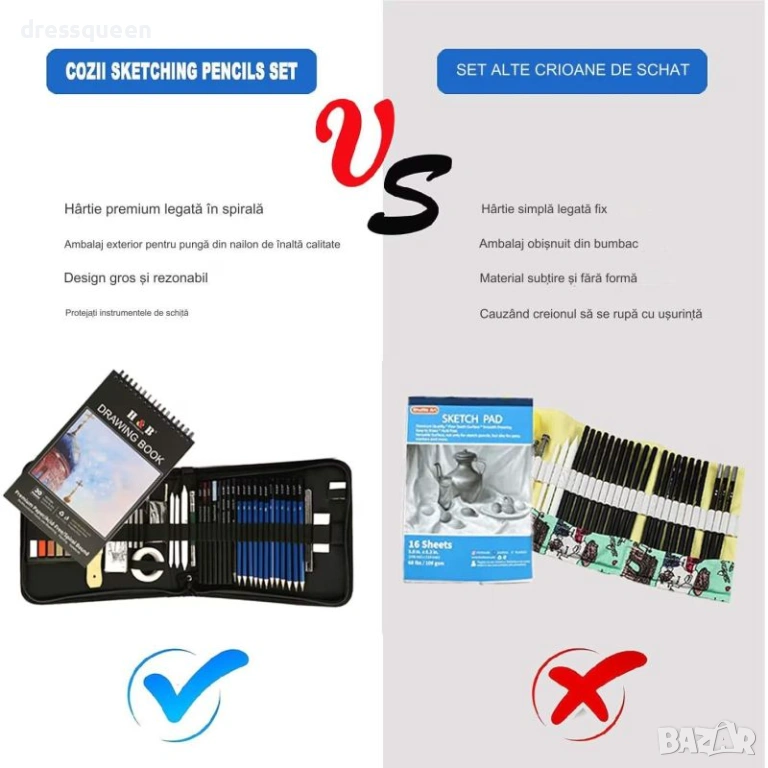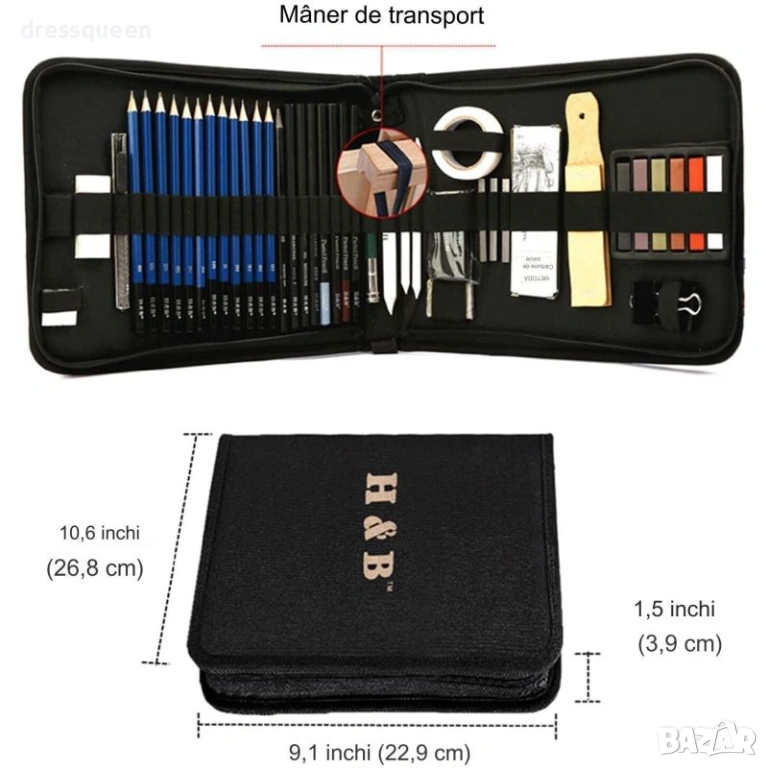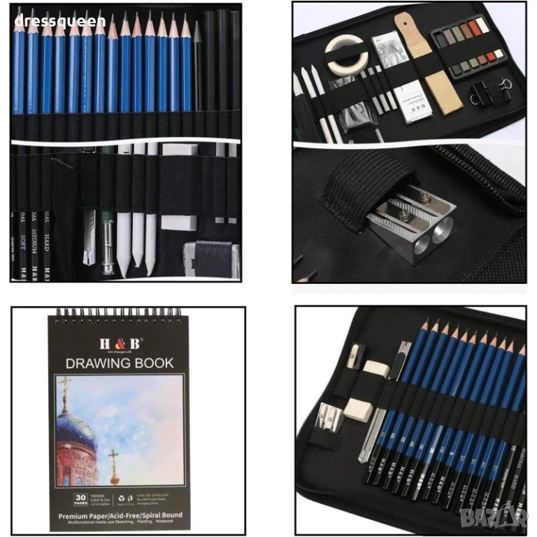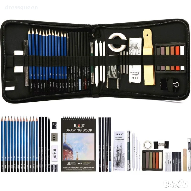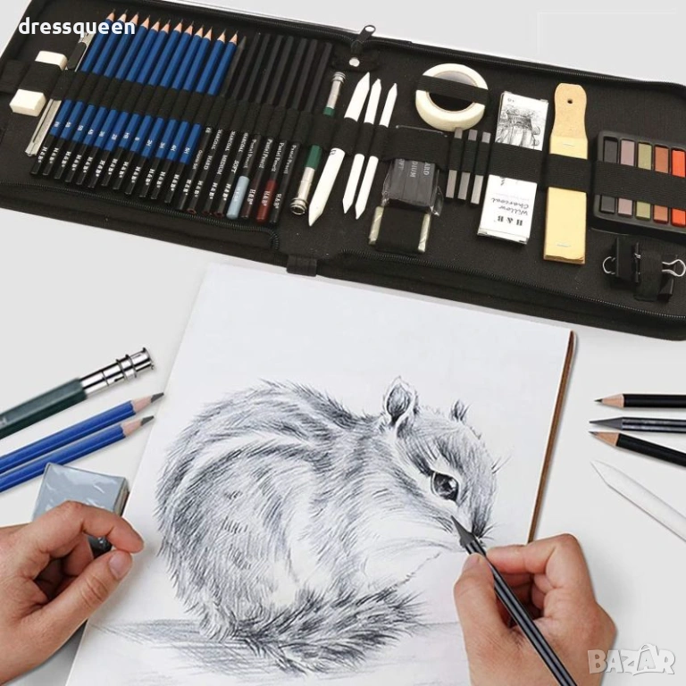 Започнете вашето арт приключение веднага с комплект за скициране Prina – идеален подарък за всеки начинаещ художник. Този цялостен сет от 50 части съдържа всичко необходимо за графика: графитни моливи с 12 степени, въглени моливи и различни стикове за насищане на цвета. Включени са три броя инструменти за смесване, две гуми за корекция и метална острилка. Като бонус, получавате скицник с три различни цвята хартия и ръководство за рисуване. Здравият калъф с органайзер е идеален за пътуване и поддържане на реда.