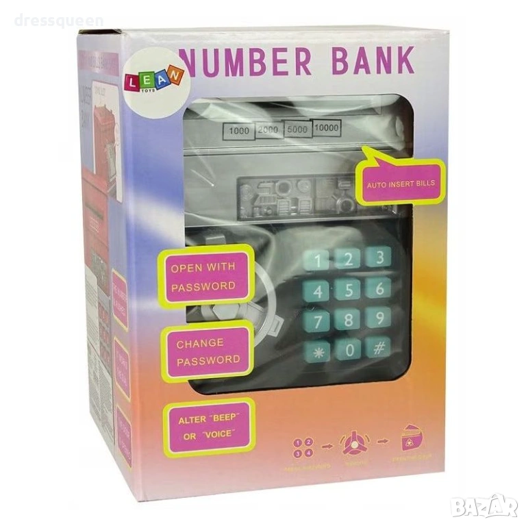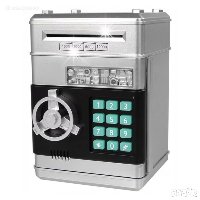 Подарете на детето си електронен сейф за спестяване, който комбинира играчка и практичен финансов инструмент. Тази детска касичка е с интерактивен дизайн и работи като мини сейф, отключващ се само след въвеждане на ПИН код. За да влезете в сейфа, просто въведете кода и завъртете копчето по посока на часовниковата стрелка. Касичката е изработена от здрава и устойчива пластмаса и има компактни размери (19 см на 12.5 см на 13.5 см), което я прави идеална за детската стая. Тя е отлично място за съхранение на монети и банкноти, като по този начин насърчава финансовата грамотност.