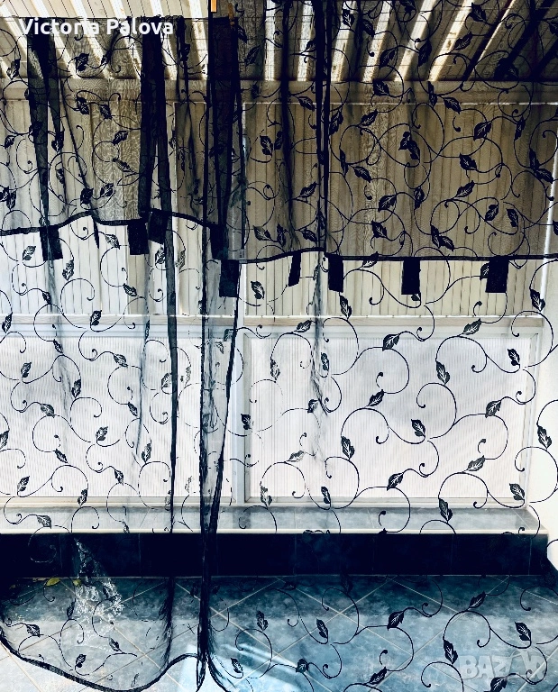 Комплект черни тюлени пердета с флорални мотиви (2 броя)