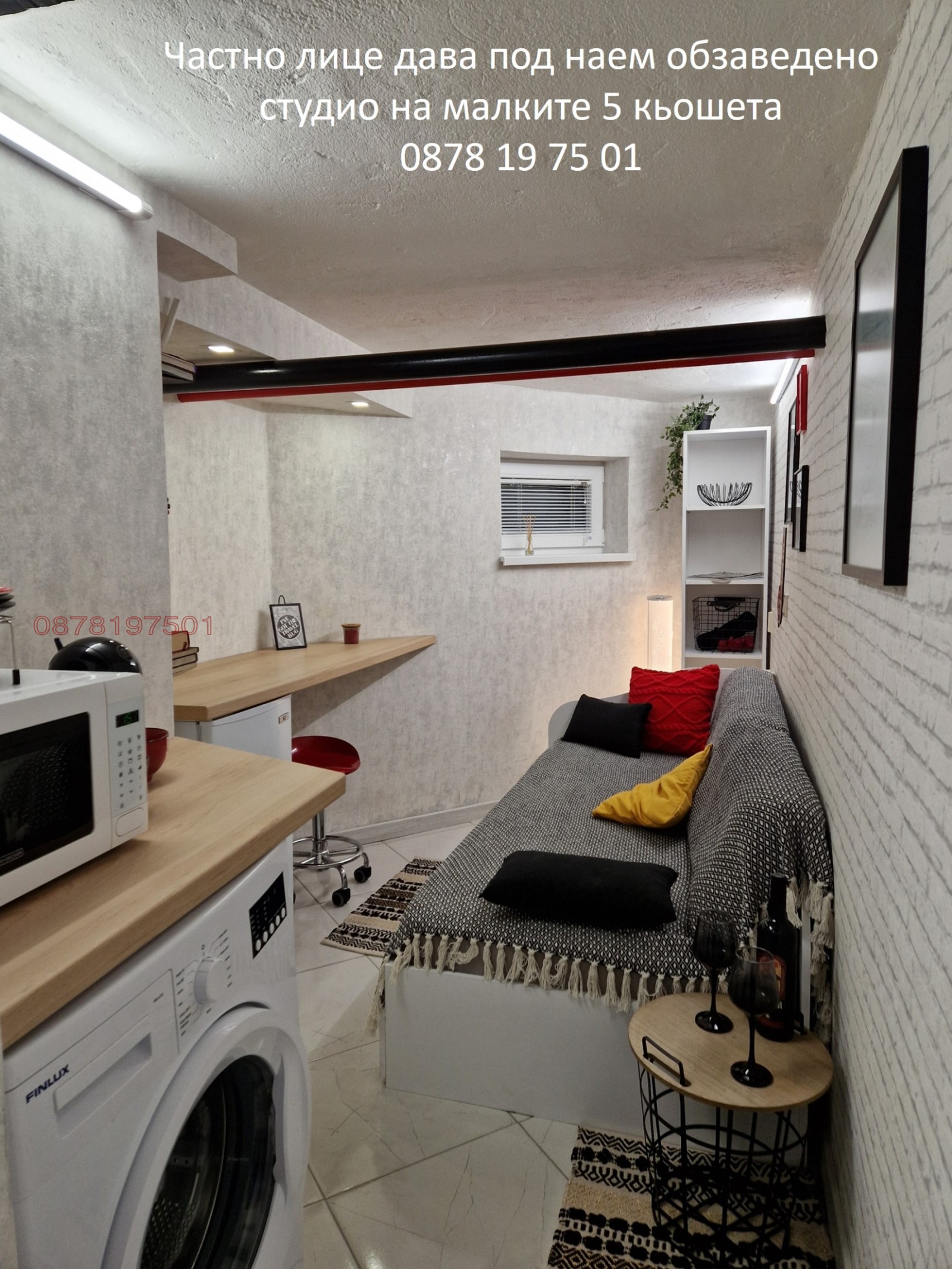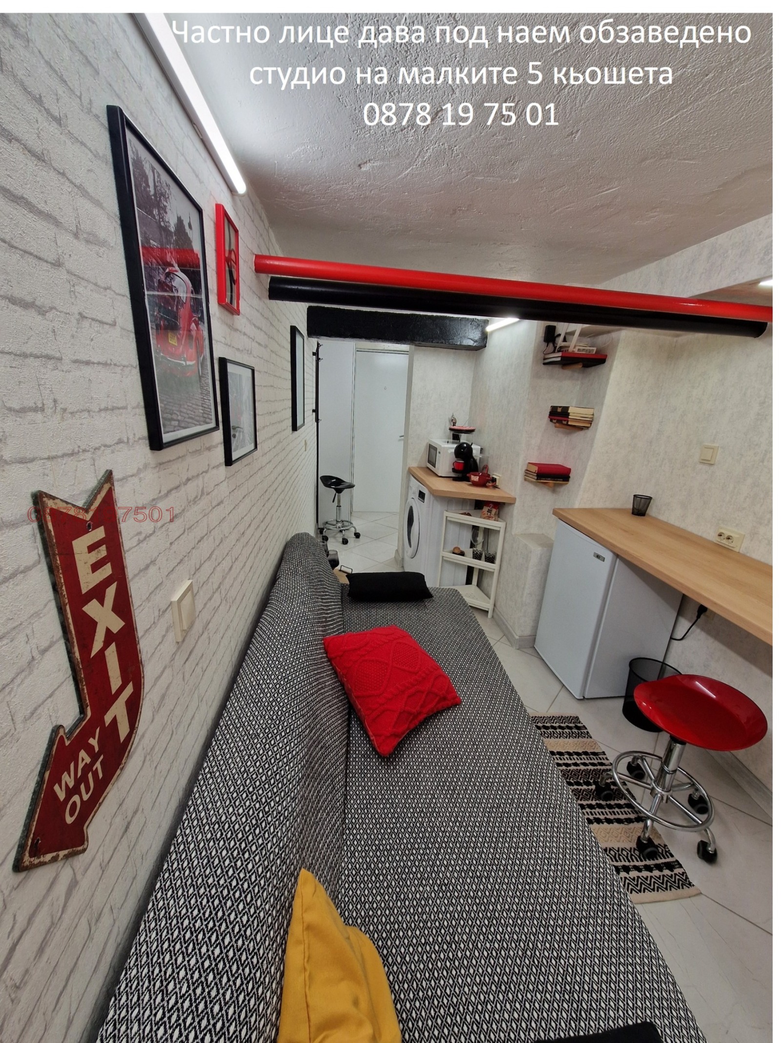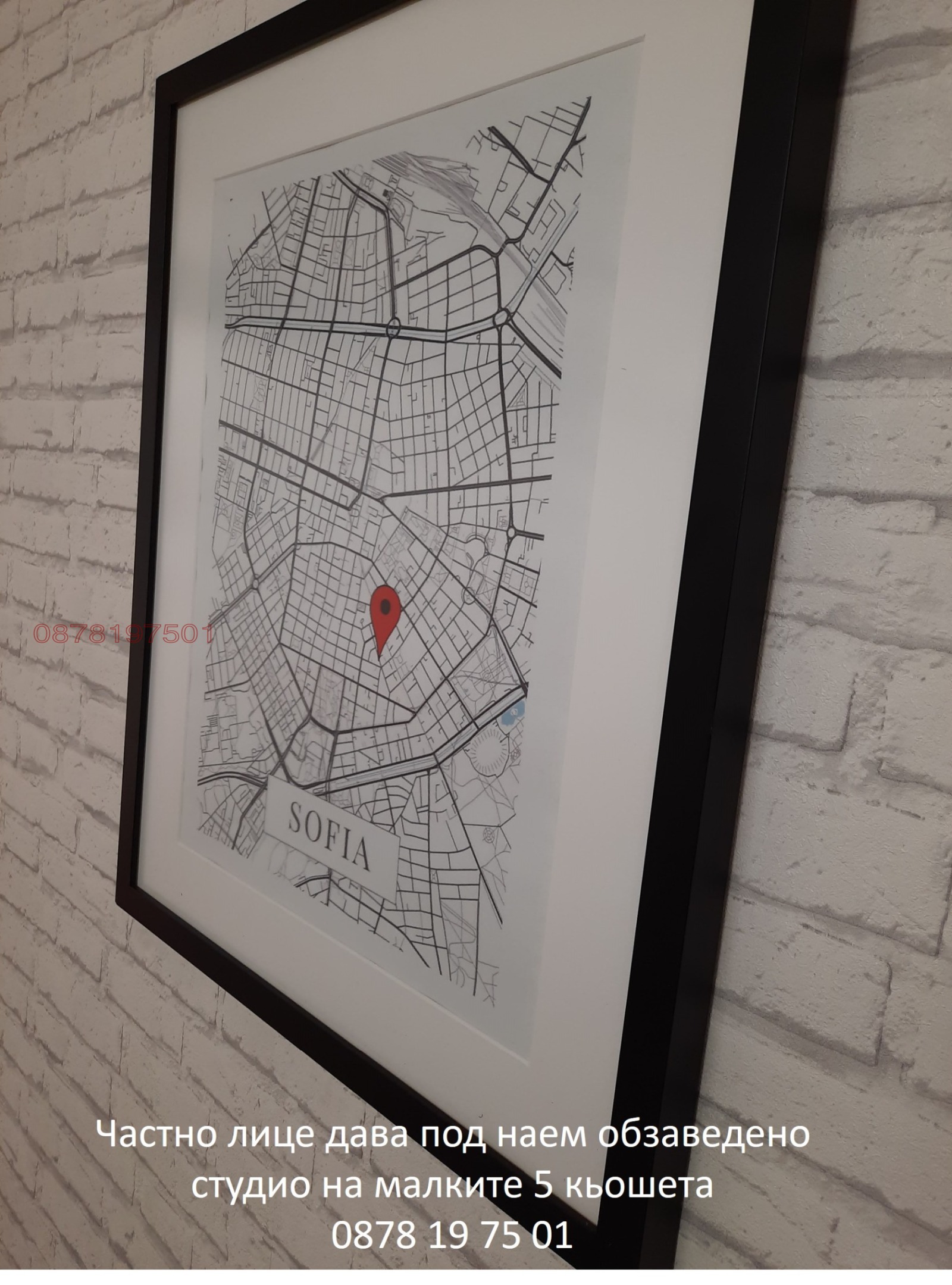 Собственик предлага под наем малко, кокетно, самостоятелно студио, разположено в идеалния център на София - малките 5 кьошета - тихо, спокойно, но комуникативно място, осеяно с множество модерни кафенета, ресторанти и занаятчийски магазини.