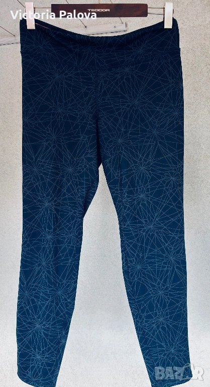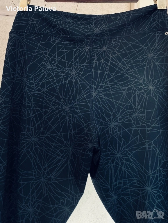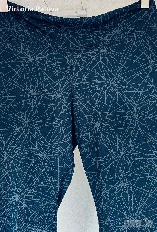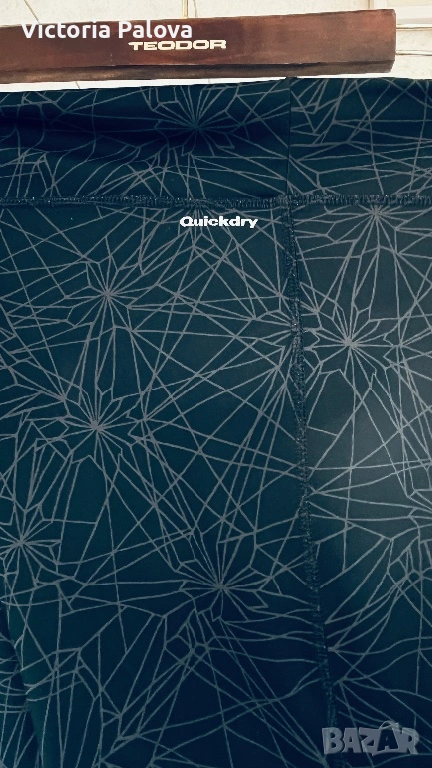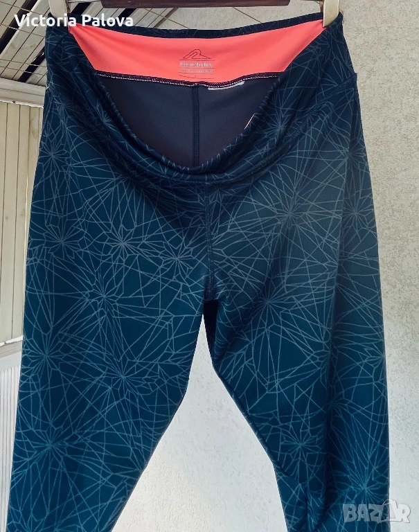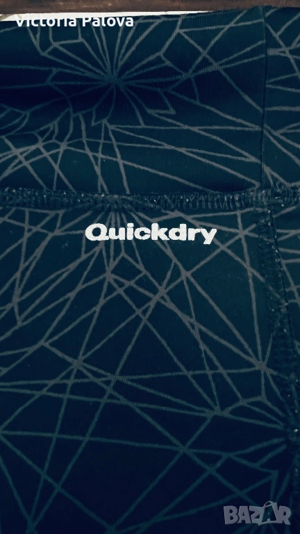 Висококачествен спортен клин на марката Quickdry, подходящ за фитнес, йога или интензивни тренировки. Моделът е в стилен тъмносив цвят с уникален геометричен принт, наподобяващ кристални структури или фина паяжина, допълнен от контрастен коралов детайл от вътрешната страна на колана. Изработен е от високотехнологична дишаща материя, която отвежда влагата и изсъхва изключително бързо, осигурявайки пълна свобода на движение. Въпреки че по етикет размерът е L, клинът е осезаемо уголемен и отговаря на XL. Моделът разполага с висока талия и широк еластичен колан, който стои стабилно. Клинът е в отлично състояние, без следи от употреба, а материята е плътна, еластична и непрозрачна.