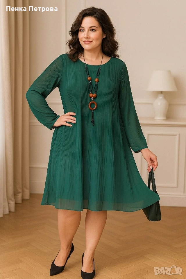 ✅ Елегантни туники-рокли Солей в наситен цвят Петрол с дълги ръкавчета. Висококачествена материя шифон Солей с подплата, НЕ СЕ мачкат, НЕ прозират: