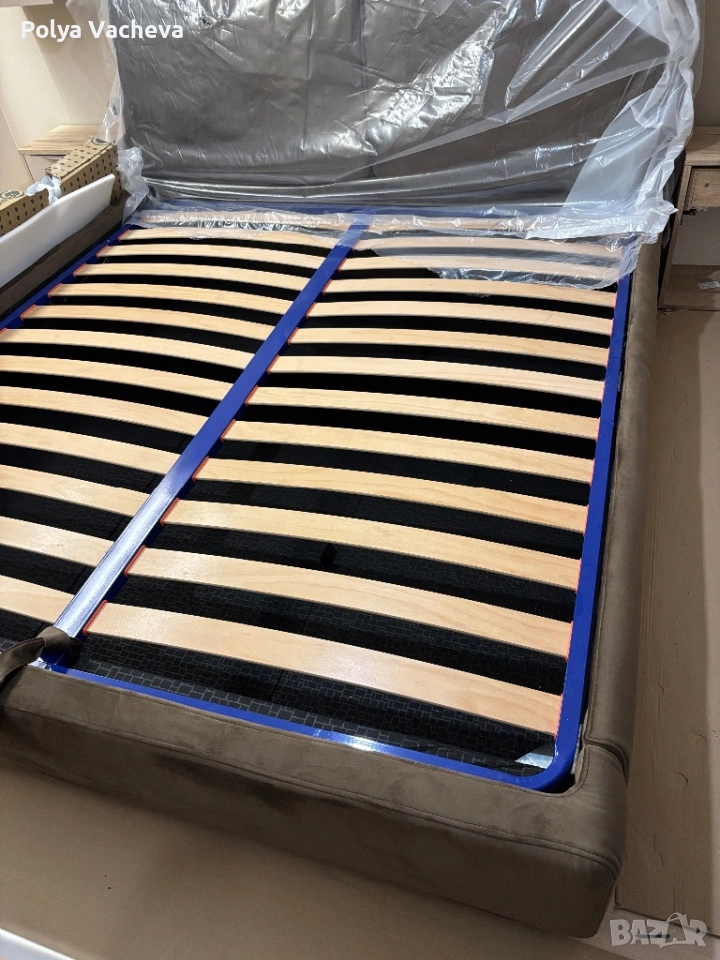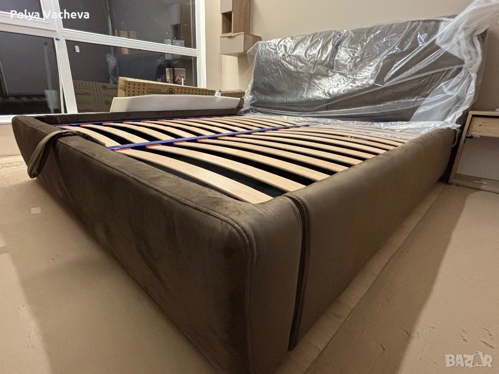 Чисто нова спалня в кафяв десен. Сглобена веднъж. Заема цялата стая. Размерът не ни устройва и затова я продаваме. Включва подматрачна рамка. Само лично предаване за град София.