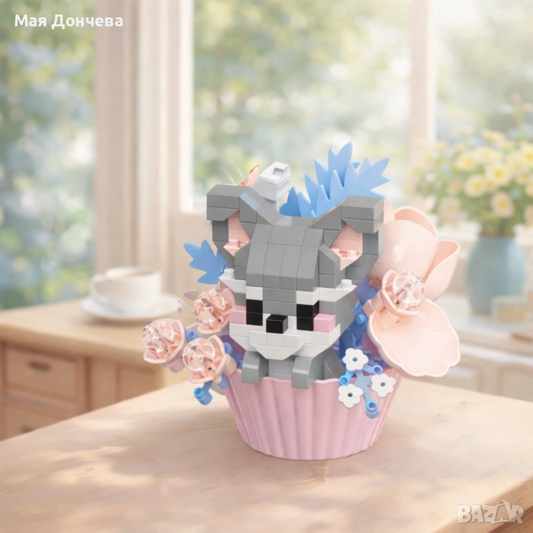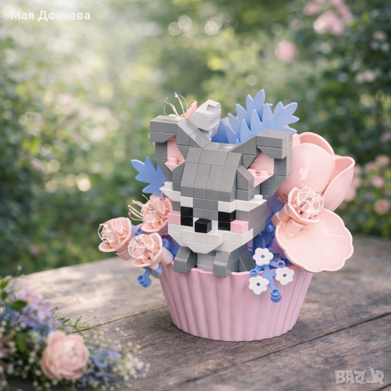 Уникален конструктор за всички любители на креативните модели! Създайте сладко енотче с цветя, което изглежда като стилна декорация за дома. След сглобяване моделът се превръща в красив декоративен елемент, подходящ за бюро, етажерка или подарък.