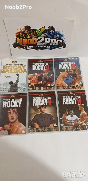 Продавам пълната DVD колекция на легендарната поредица Rocky с Sylvester Stallone. Филмите са на английски език и са в перфектно състояние, дисковете са запазени без драскотини.