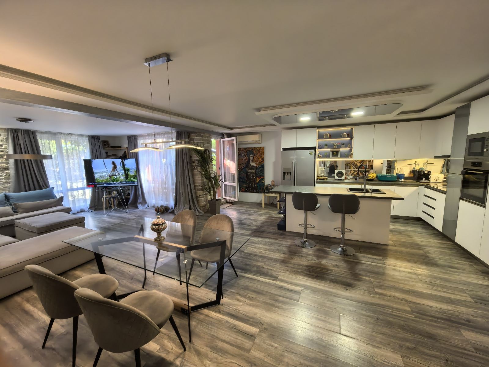 Уютен и стилен дом с площ от 135.19 кв.м., разположен на първия етаж в малка, отлично поддържана нова сграда, сред зеленина и спокойствие.