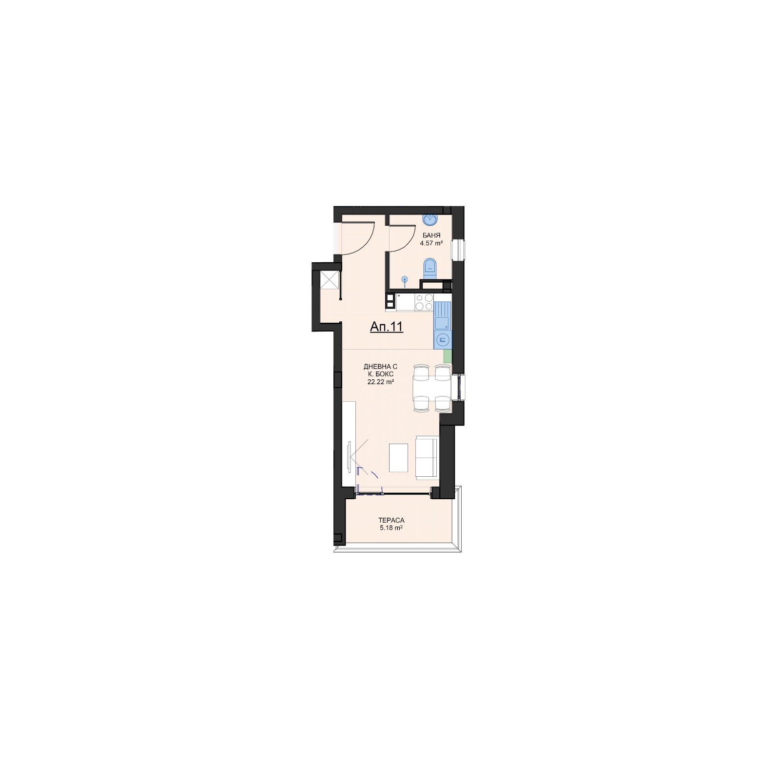 Дневна с кухненски бокс