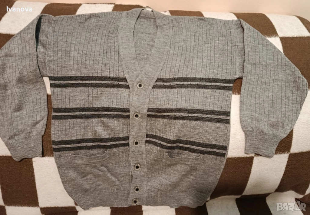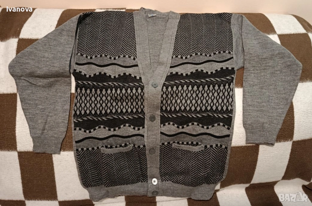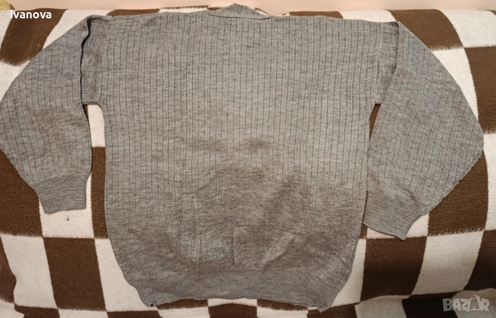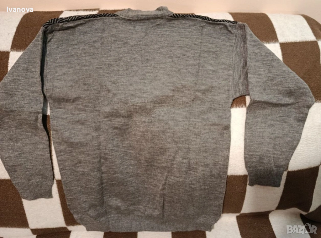 е изцяло сив. Размери: ширина 54 см.,дължина 69 см., рамо 20см, ръкав 51см.