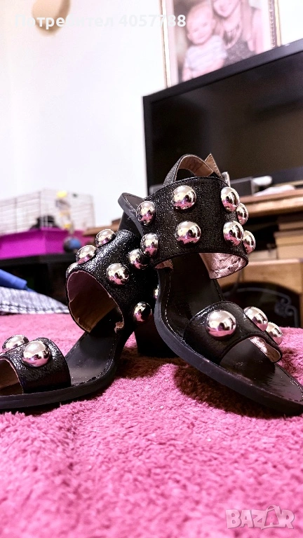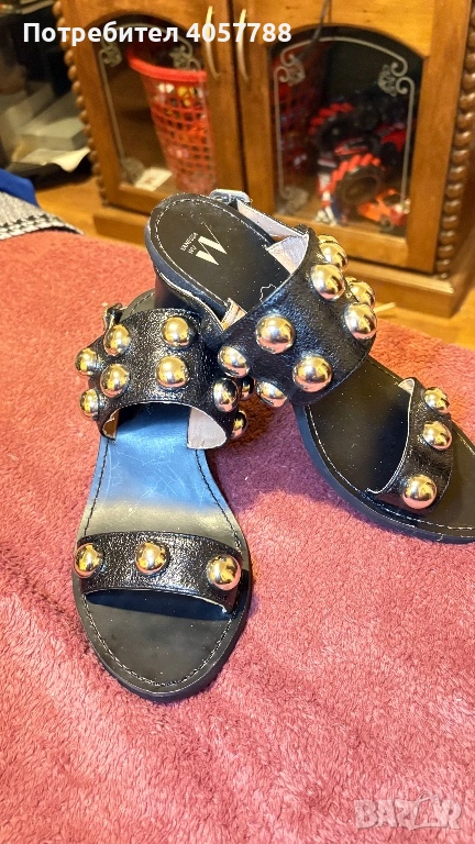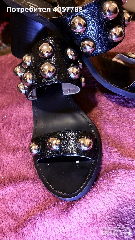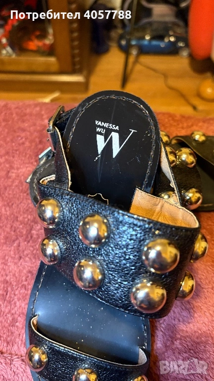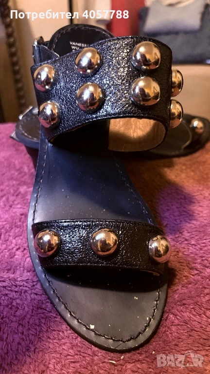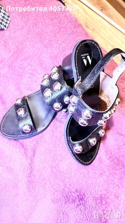 Продавам изключително стилни и модерни сандали на френската марка Vanessa Wu. Моделът е с дебел, стабилен ток и ефектни големи сребристи капси (studs), които веднага привличат вниманието.