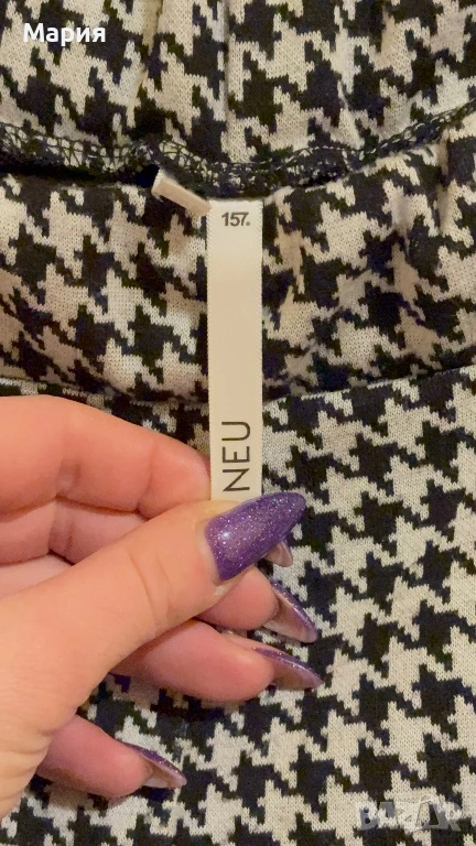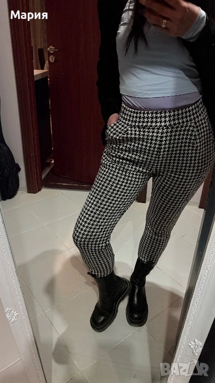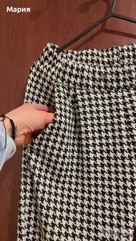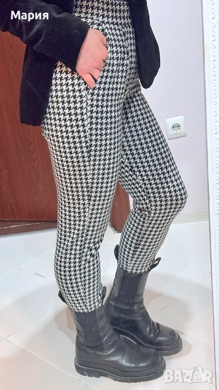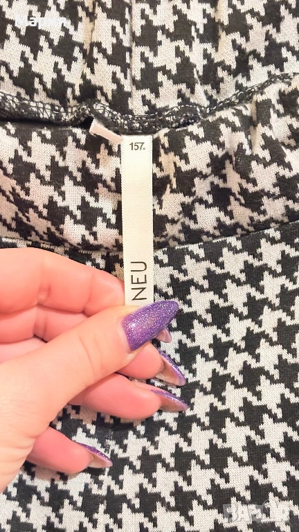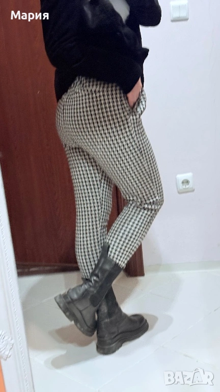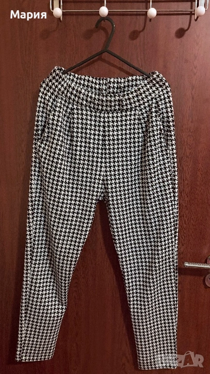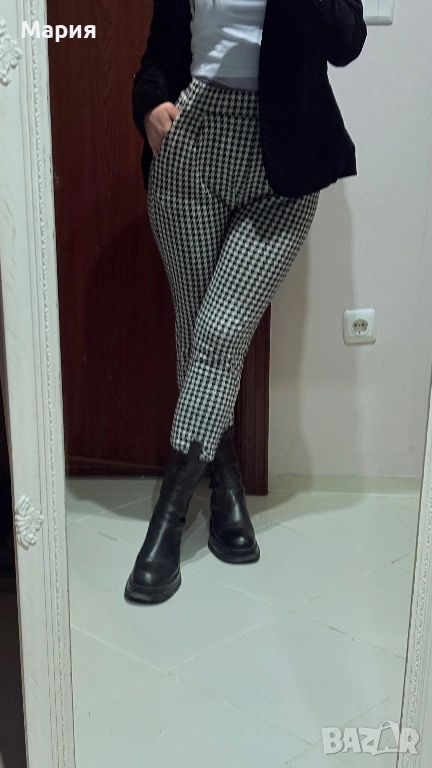 Продавам стилен дамски панталон на шведската марка Lager 157, линия NEU. Моделът е „Alba“ – изключително удобен, с класически десен пепит в черно и бяло.
