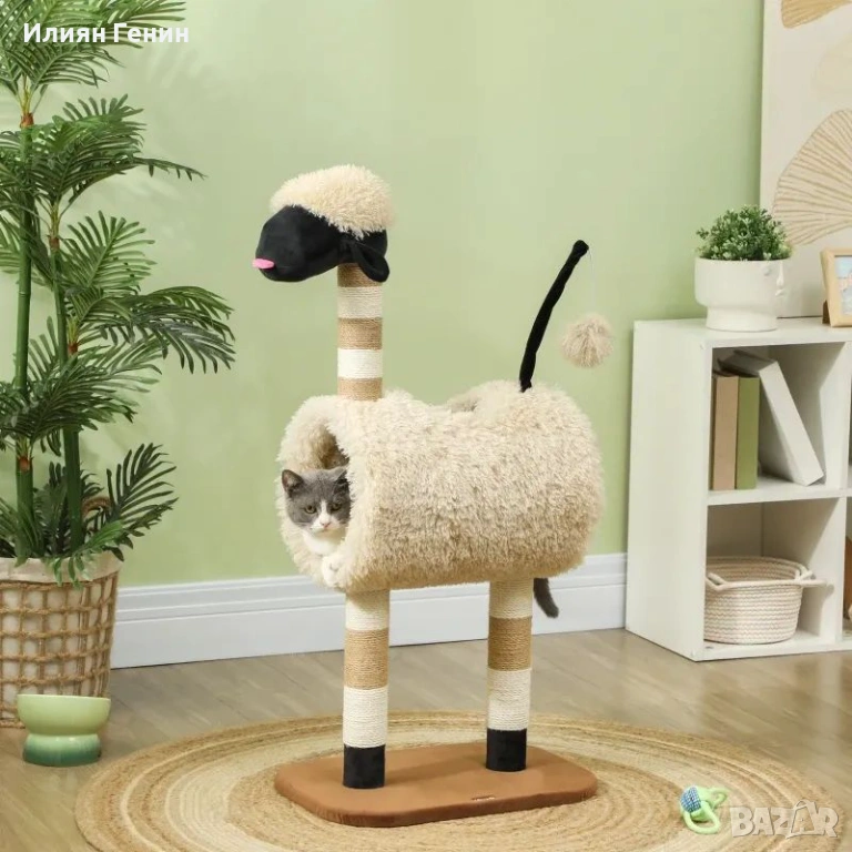 Очарователен дизайн с овца с черен нос: Това дърво за котки се отличава с отличителен дизайн с овца с черен нос, който не само добавя чар към вашия дом, но и осигурява на вашата котка приятно място за игра.