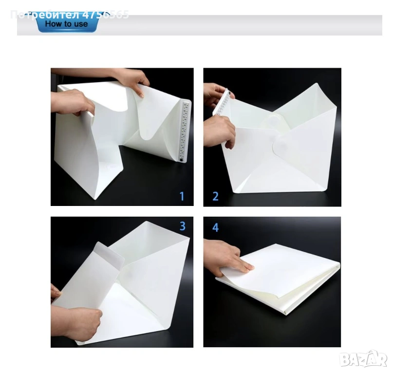 Компактно мини фотостудио, подходящо за заснемане на продукти за онлайн магазини, BAZAR, OLX, Etsy, Amazon, eBay и социални мрежи.