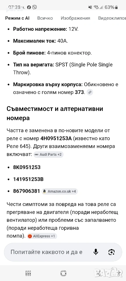 Реле 373 VW Голф 5 2бр. - Ауди - 8D0951253A - V23134 - 4H0951253A - 8K0951253 - 867906381 → Обява 53730228