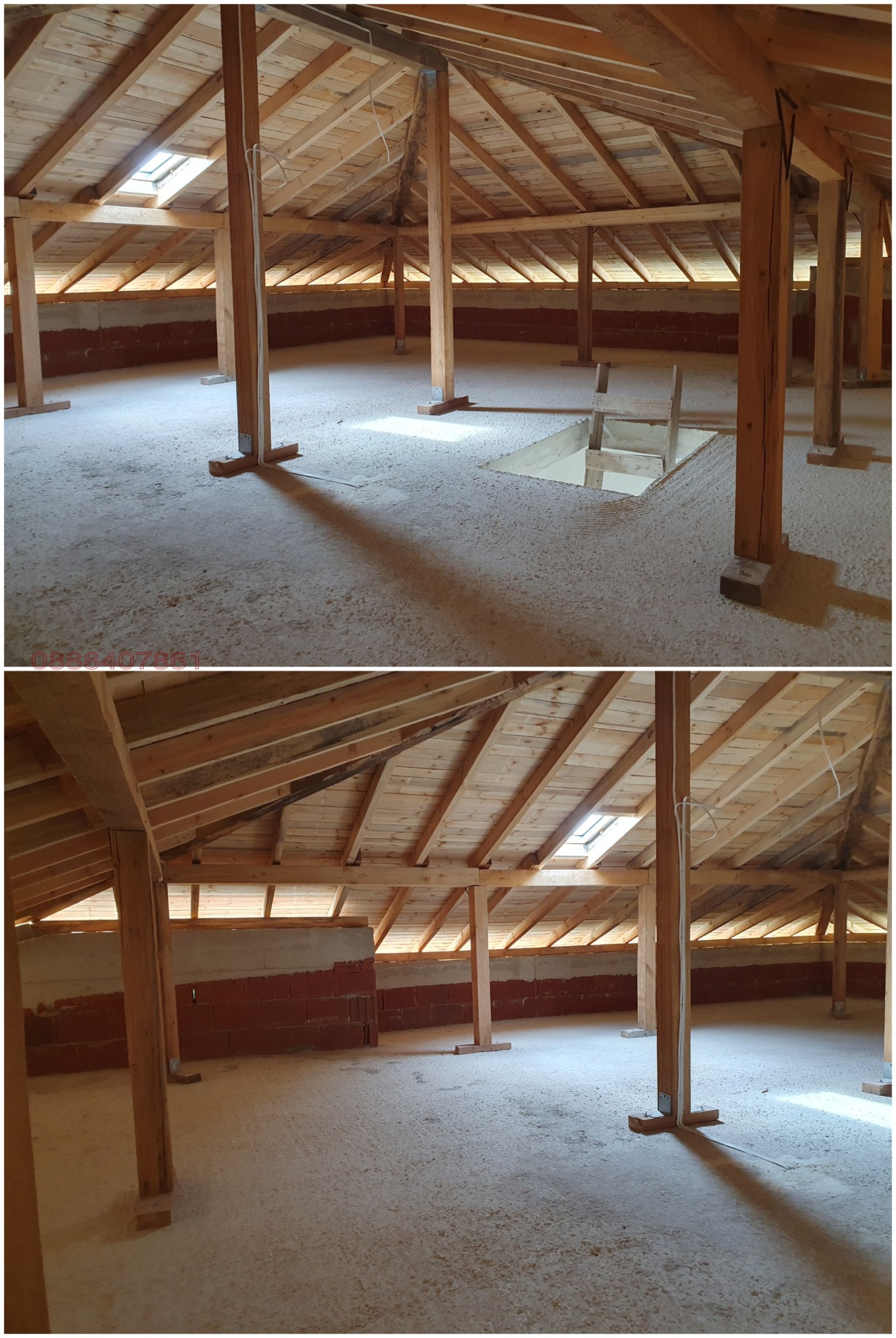 Всички санитарни помещения, стълбище, гардеробна, склад са с прозорци и естествена дневна светлина. Таванското помещение на къщата е използваемо височината му е 2.5 м, достъпът му е чрез сгъваема стълба, има стъклена капандура за естествена дневна светлина и не е в квадратурата на сградата.