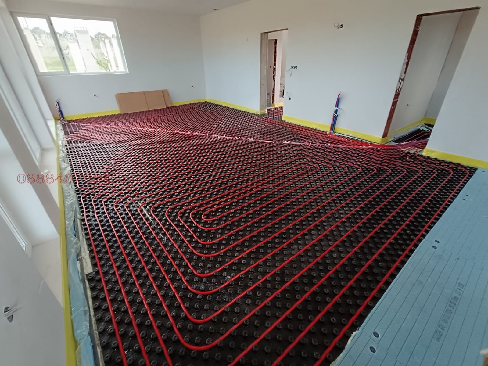 Всички помещения в сградата са ориентирани на ЮГ. Изградена е ВиК и ЕЛ мрежа окабелена е с ТВ кабели и кабел за ИНТЕРНЕТ. Отоплението на сградата е с ТЕРМОПОМПА, конвектори и лира в банята. Поставено е подово отопление със съответната изолация бойлер за двете бани захранвано от термопомпата.