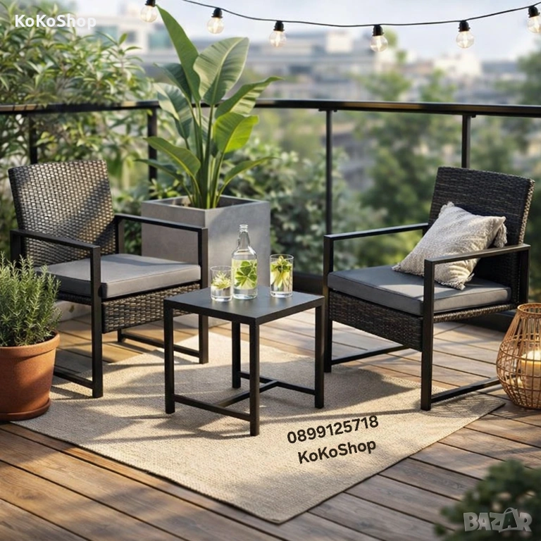 Модерен комплект градински мебели от 3 части – идеален за балкон, тераса, двор, градина или веранда.