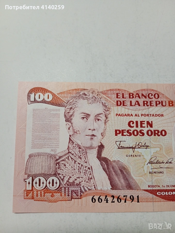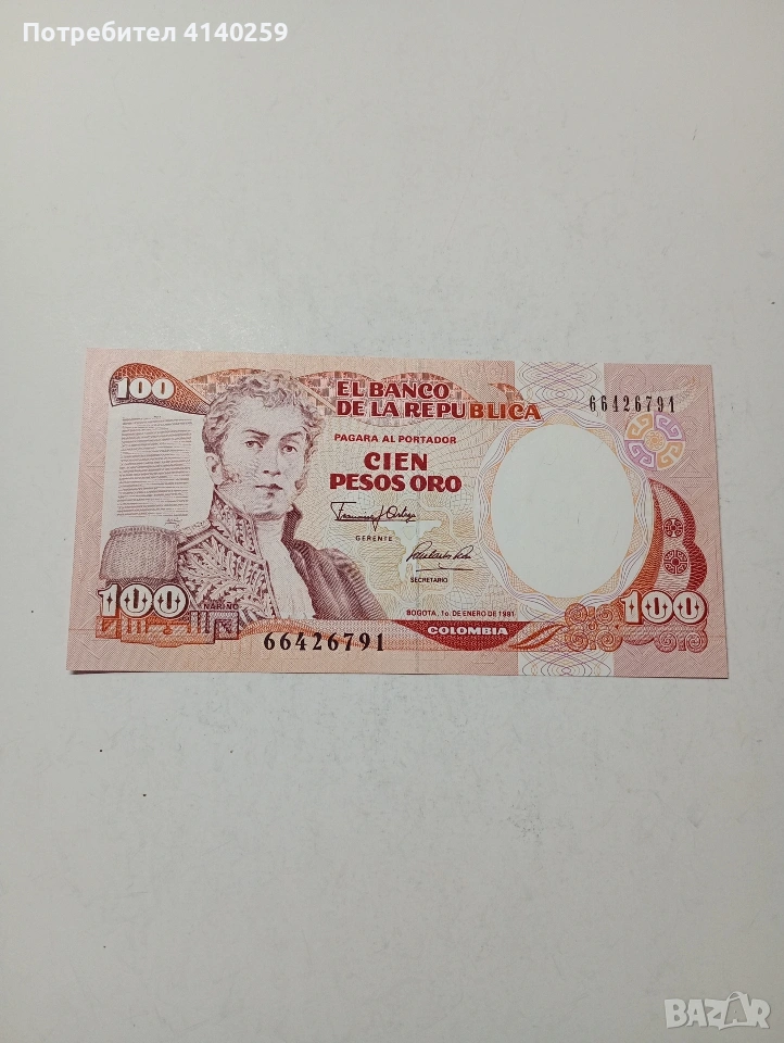 КОЛУМБИЯ БАНКНОТА 100 ПЕСО 1991 Г СЪСТОЯНИЕ НОВО ПОЛУЧАВАТЕ СНИМАНАТА БАНКНОТА РАЗГЛЕДАЙТЕ ДРУГИТЕ МИ ОБЯВИ ДА КОМБИНИРАТЕ ДОСТАВКА ЕКОНТ ЗА ВАРНА ЛИЧНО