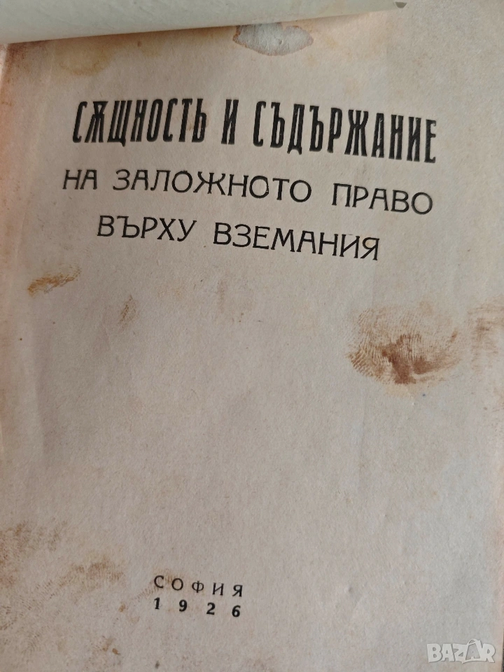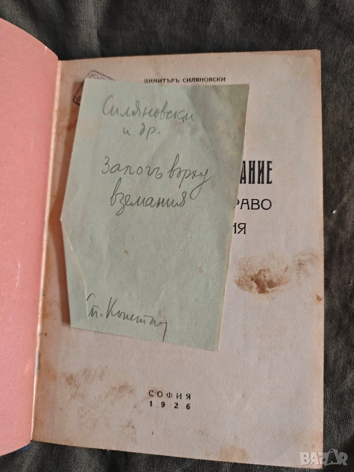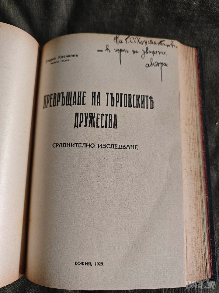 1.Превръщане на търговските дружества Георги Клечков с посвещение 1929 г. 184 стр. 2. Същност и съдържание на заложеното право. Димитър Силяновскии 1926г. 195 стр Подвързани заедно