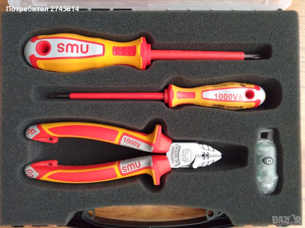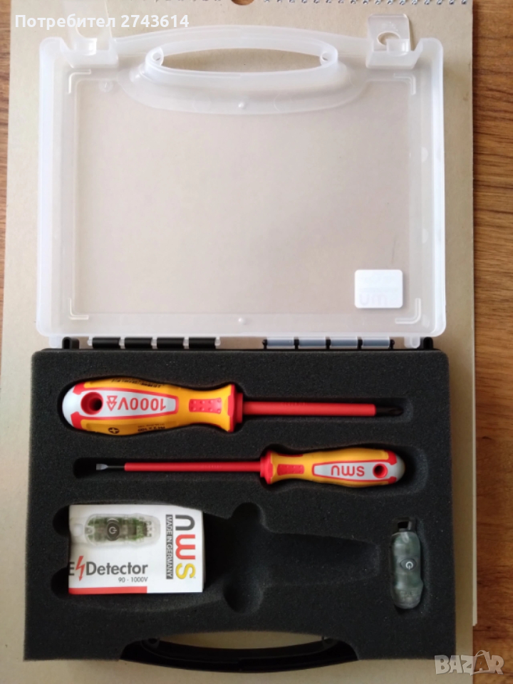 Комплект резачки, отвертки и безконтактен тестер за напрежение на NWS. Отвертките са 3,5 x 06 x 100 шлиц и PH2 x 100 VDE. Безконтактния тестер се закрепя за дръжките на клещи NWS. Резачки NWS 135 49 VDE 160, които са ползвани, но са много запазени.
