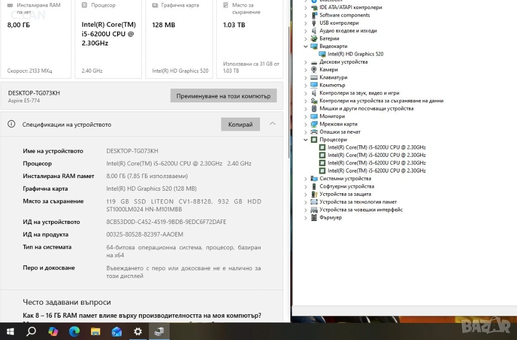 Твърд диск: 128GB SSD M.2 + 1TB HDD SATAIII