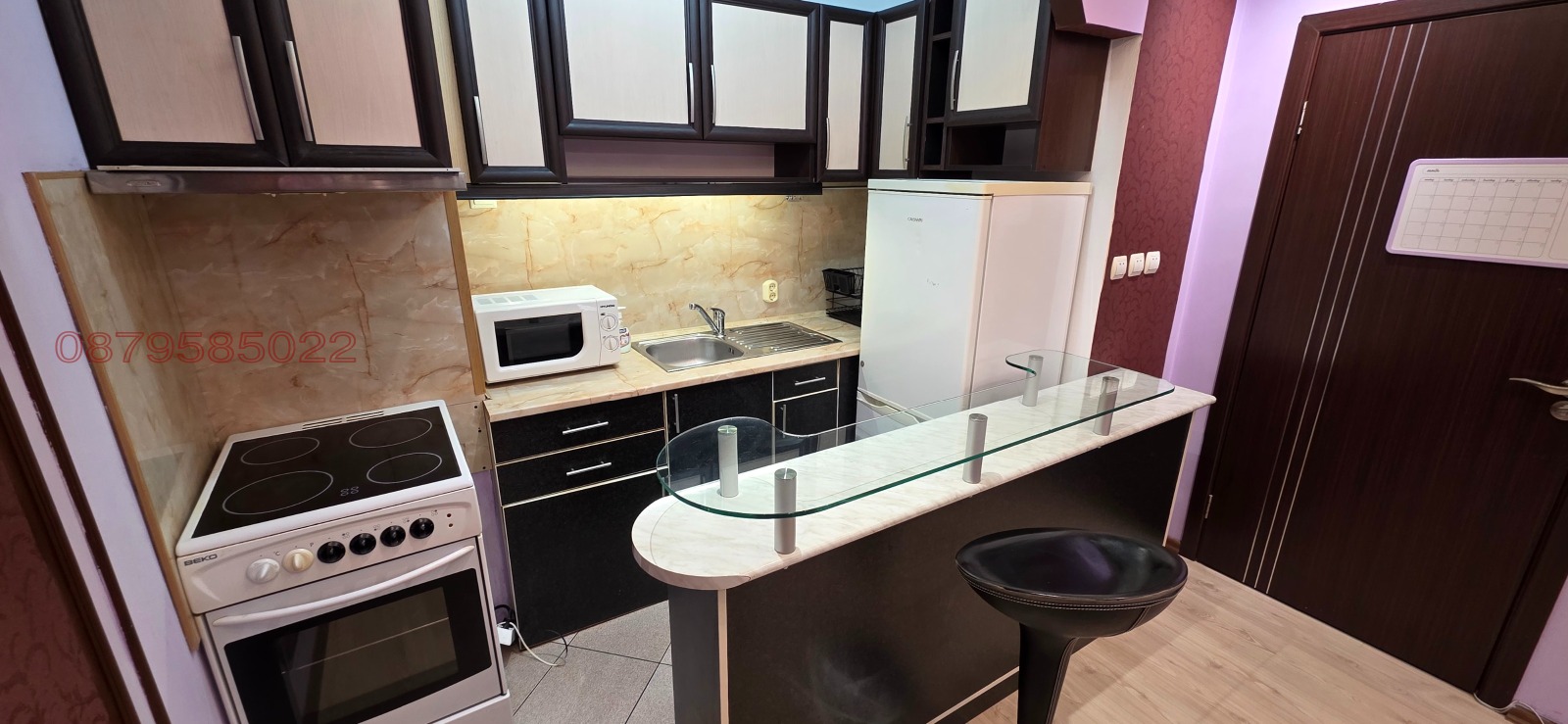 Луксозен и комфортен апартамент на ул. Димитър Икономов 23 . Намира се в комуникативен и оживен район в кв.Левски, в близост до магазини срещу супермаркет BILLA. Напълно обзаведен с висококачествени мебели, нови електроуреди и всичко необходимо за едно домакинство. Състои се от дневен тракт с с отлично и цялостно обзаведена кухненска част и дневна с мека мебел тераса (юг), спалня с легло тип спалня, гардероб, сервизно помещение. Настилките навсякъде са висококачествен гранитогрес и ламиниран паркет , стените са с латекс. Отлична локация; близост до спирка на редовен градски транспорт, магазини. Без домашни любимци. Дългосрочно.