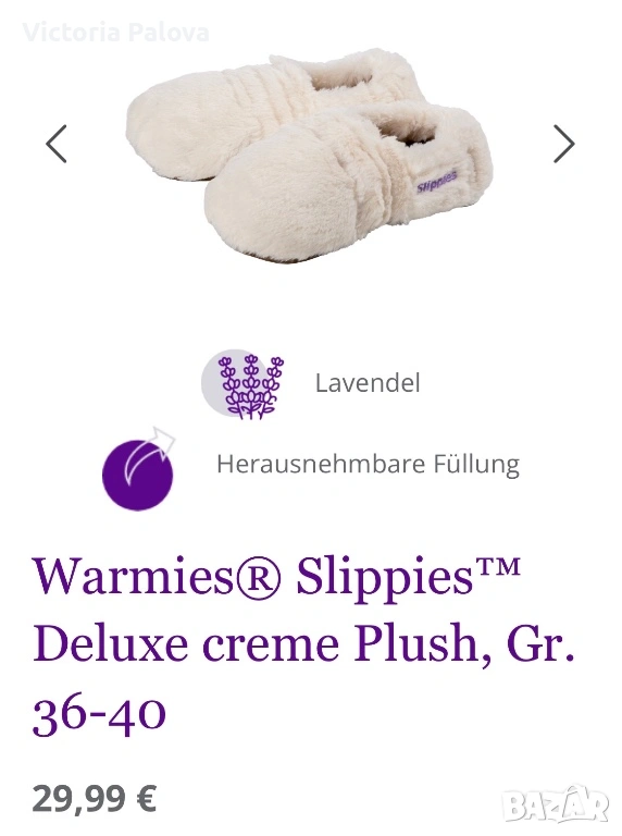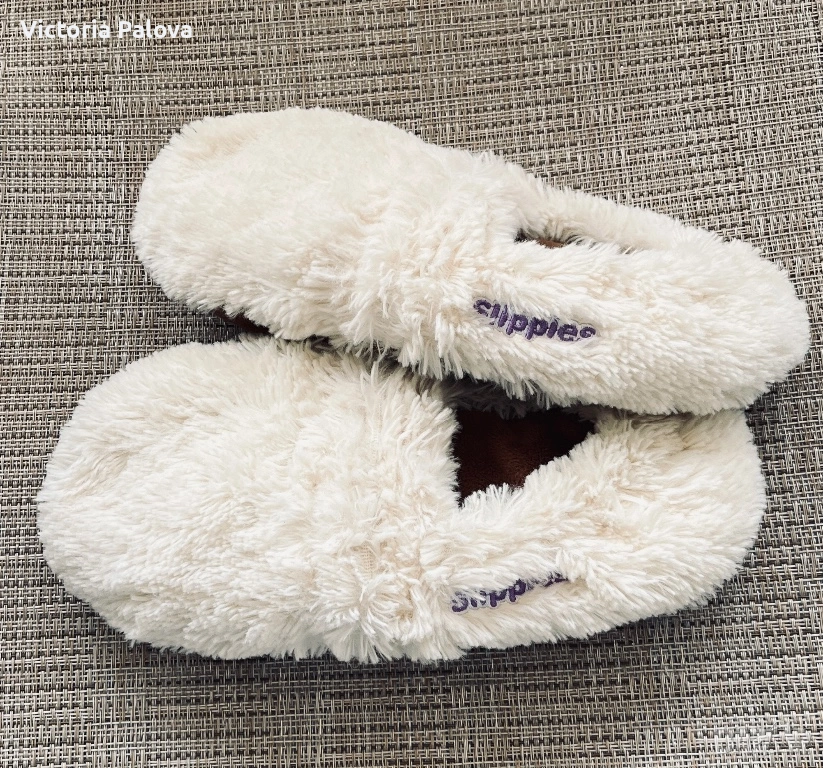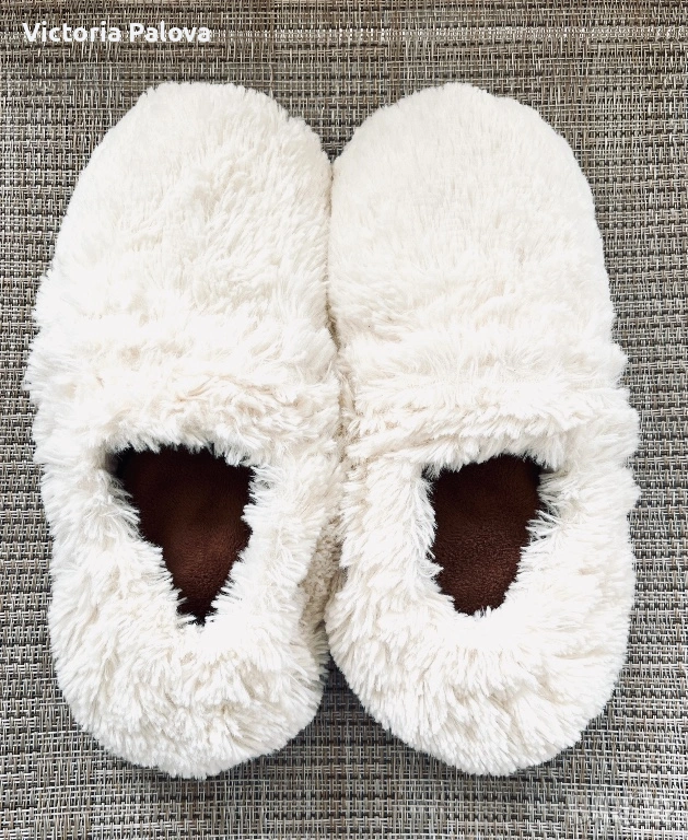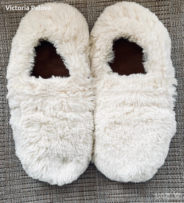 Warmies® Slippies™ Deluxe представляват специализирана домашна обувка за почивка, проектирана за ефективно затопляне на краката и постигане на релаксация. Изделието е изработено от качествен плюш в кремов цвят, който притежава мека текстура и устойчивост при употреба. Основната функционална характеристика на този модел е наличието на естествен пълнеж от просо и сушена лаванда. При нагряване в микровълнова фурна за 90 секунди на мощност до 800 W, пантофите акумулират топлина и я отдават постепенно в продължение на до два часа, като същевременно освобождават успокояващ билков аромат.