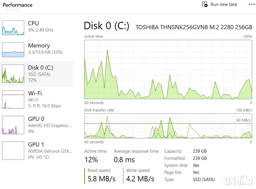 ПАМЕТ 256GB SSD NVMe (бърз и надежден диск за съхранение)