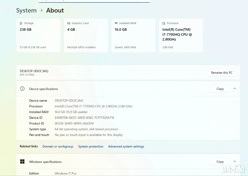 Инсталиран Windows 11 , оригинален към лаптопа