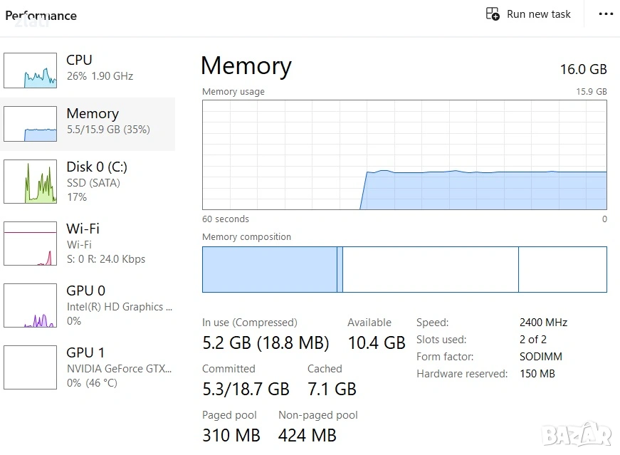 ОПЕРАТИВНА ПАМЕТ 16GB (DDR4 2667MHz – бърза и надеждна оперативна памет)