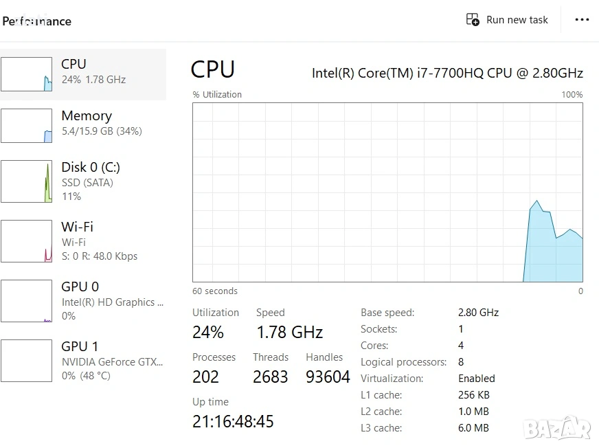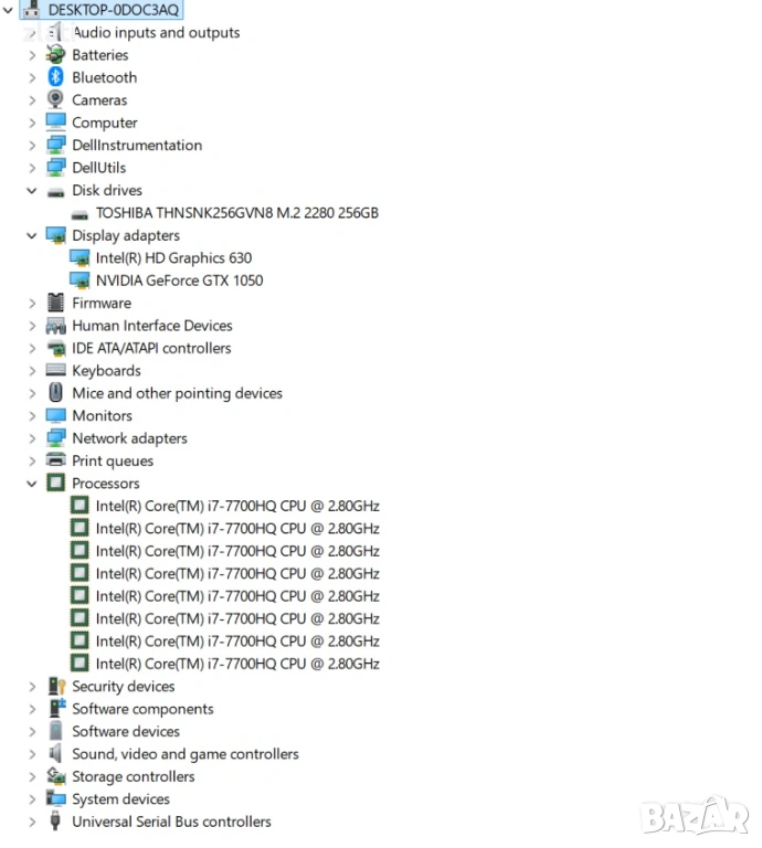 ПРОЦЕСОР Intel Core i7-7700HQ 2.8GHz(4 ядра, 8 нишки, до 3.8GHz) - 7-мо поколение (четериядрен)