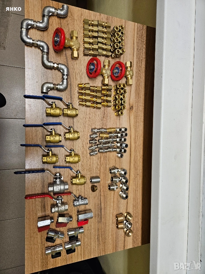 Кранове 1/2- 3€ Кран 1/4-5бр по 5€ Кран 1/4-12бр по 3€ Нипел 1/4-35бр по 1€ Коляно 1/4- 10бр по1.5€ Кран ф8 -3бр по3€ Упорен съеденител 1/4 към ф8-23бр 1.5€ Ерме ф8-22бр 1.5€ редуктив 1/2 към 1/4 5бр-1.5€ Нипел намалите 1/2 към 1/4 7бр-1.5€