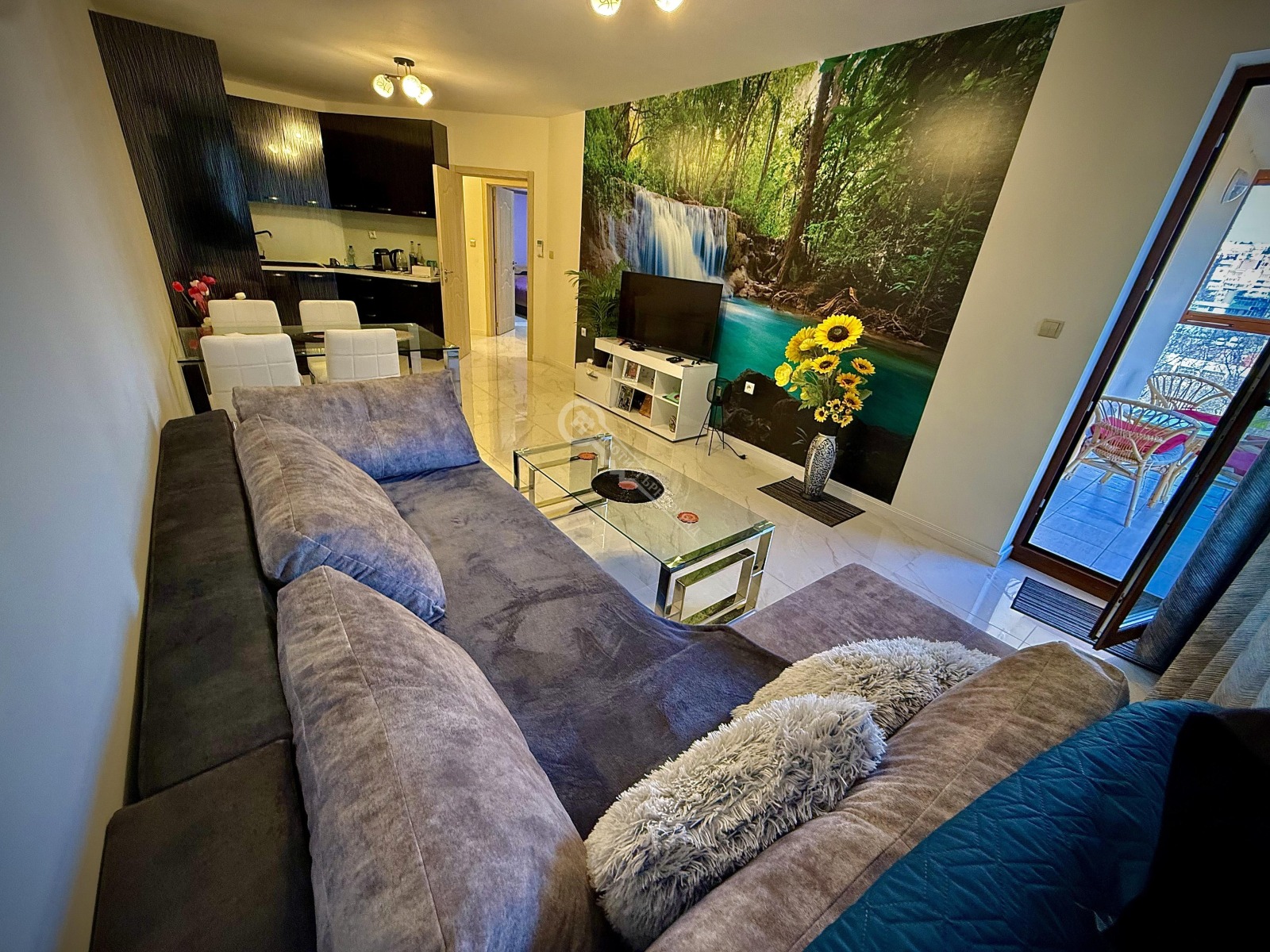 Имоти Търновград Ви предлага просторен тристаен апартамент ново строителство, с акт 16.разположен в началото на кв. Бузлуджа, в близост до автобусна спирка, магазини, ресторанти и училища. Предлаганият имот се състои от: просторна дневна с кухненски бокс с излаз на остъклена тераса, две спални, баня с тоалетна, отделна тоалетна и коридор. Жилището се предлага напълно обзаведено и оборудван със съвременни мебели и електроуреди и е готово за нанасяне. Отоплението и охлаждането е решено посредством три климатика. Към апартамента принадлежи изба с площ от 5 кв. м. В цената е включено и паркомясто!