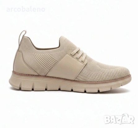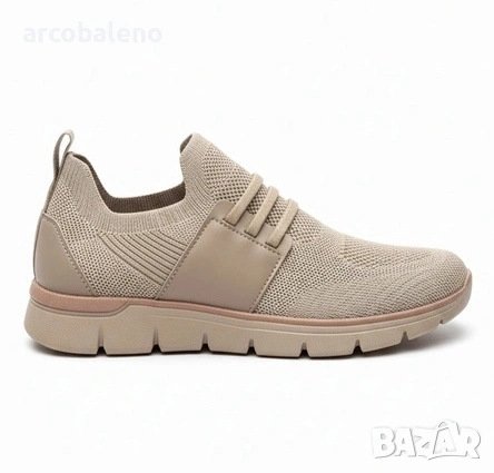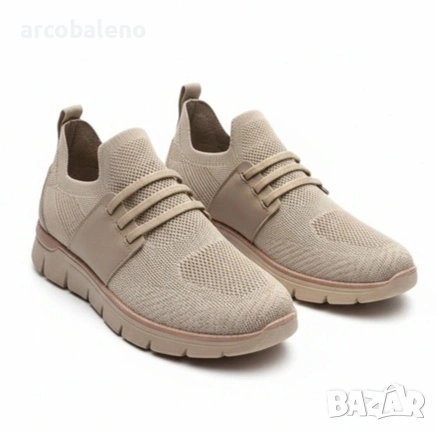 Мъжки маратонки - конструкция slip-on без връзки и плътен цвят. Горната част е еднородна, без шарки или контрастни елементи. Дизайнът съответства на формата на ежедневните маратонки и е възприеман като семпъл модел в неутрални тонове.