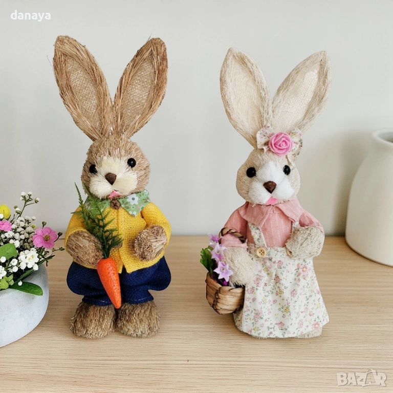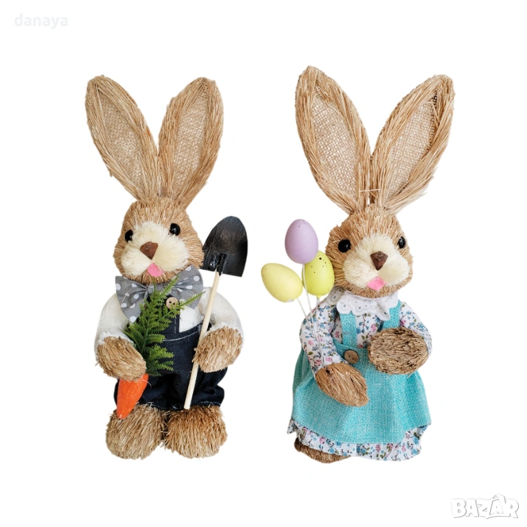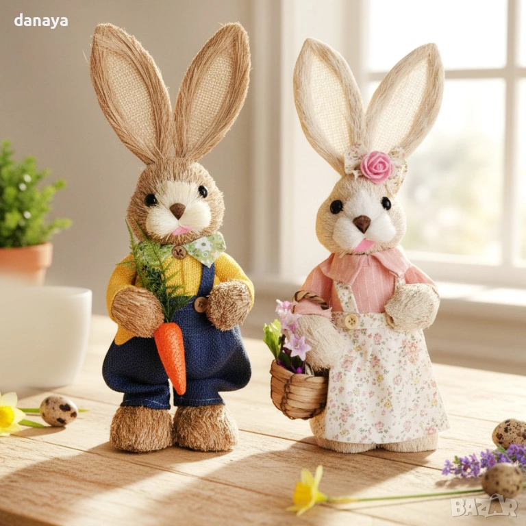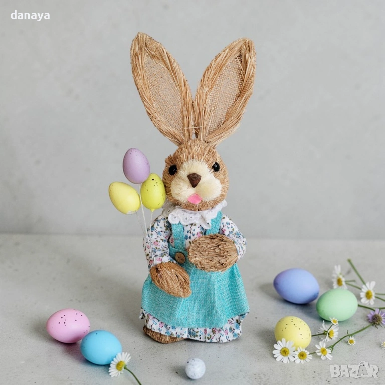 Великденският заек е символ на пролетта, новото начало и празничната радост. Фигурката е изработена с внимание към детайла – с красиви дрехи, аксесоари и сладко изражение, което я прави чудесно допълнение към всяка великденска декорация за дома, магазина, офиса или витрината.