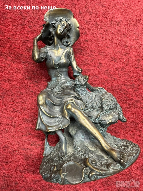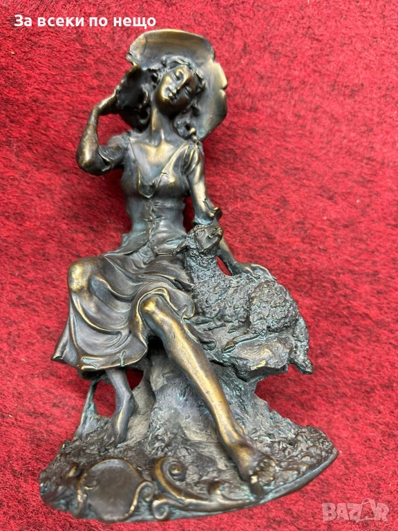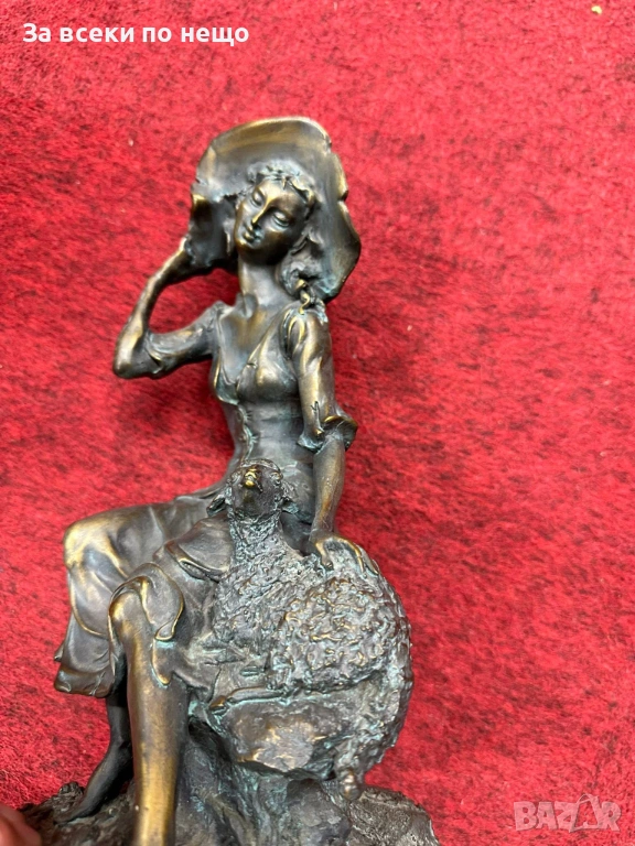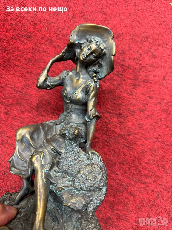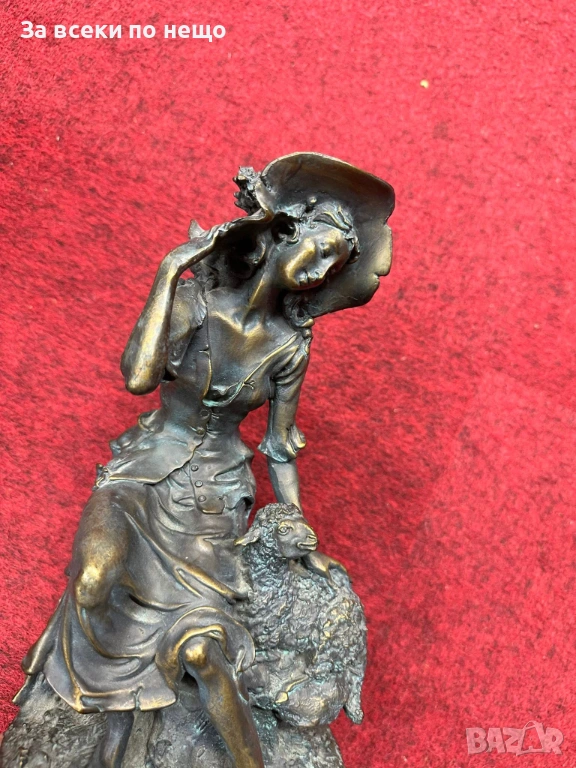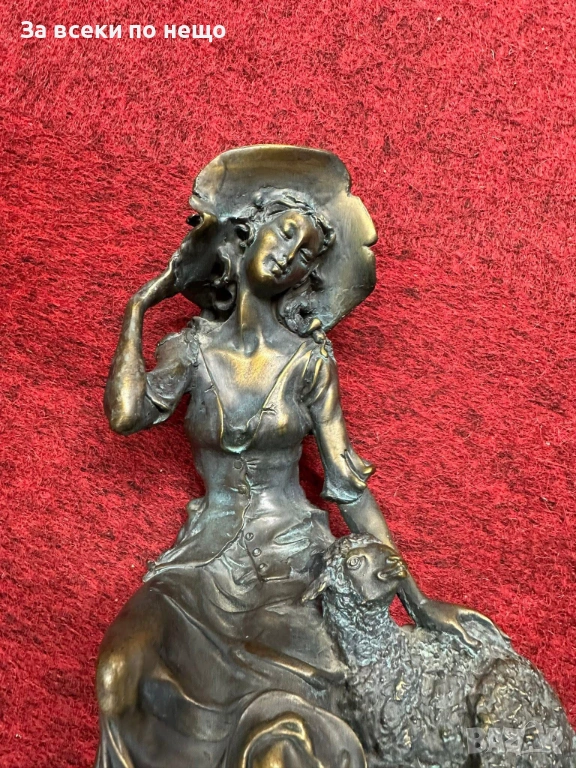 “Пастирката” великолепна млада дама с агънце, бронз, удивителна красота, майсторство Код P1936