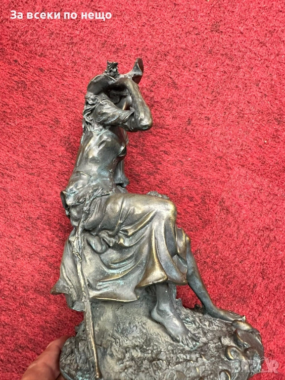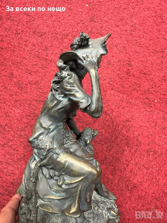 “Пастирката” великолепна млада дама с агънце, бронз, удивителна красота, майсторство и класа, височина 34 см. Отлично качество и състояние, лека патина от времето (окисляването в зелено придава завършен и автентичен вид на произведението)! Уникална украса и бижу за всеки стилен салон или домашен интериор!