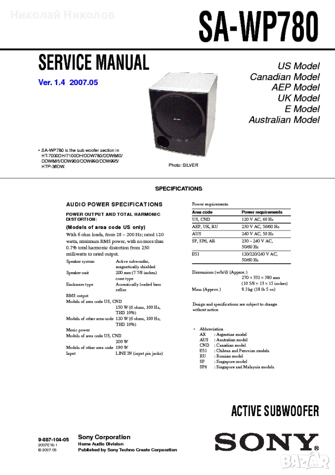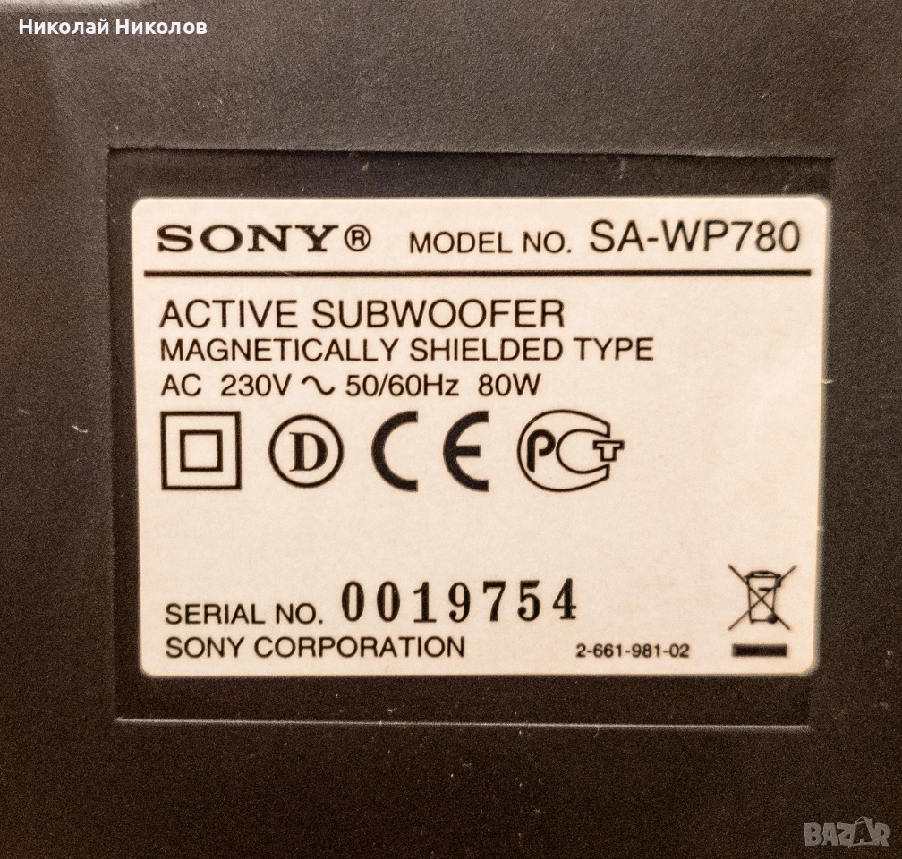 Активен Subwoofer SONY SA-WP780 → Обява 53731906