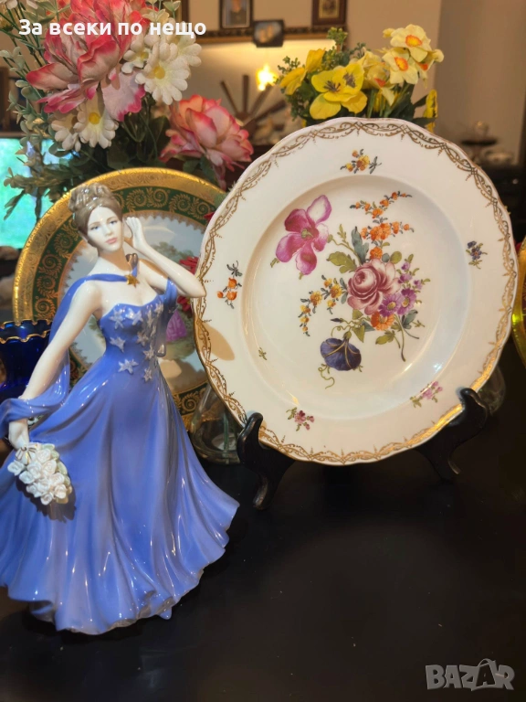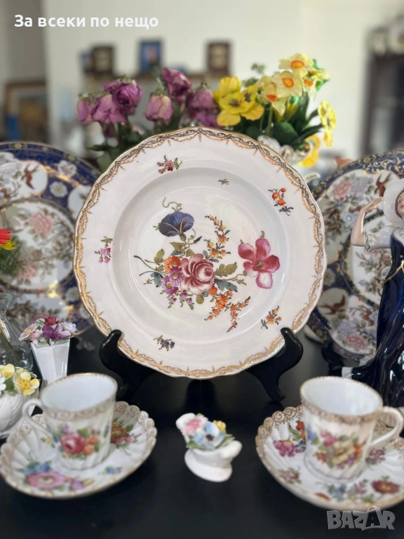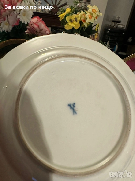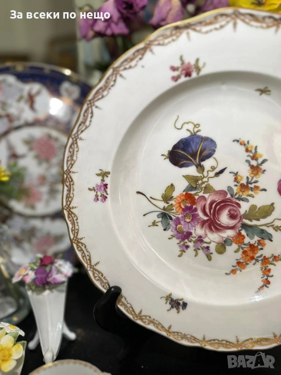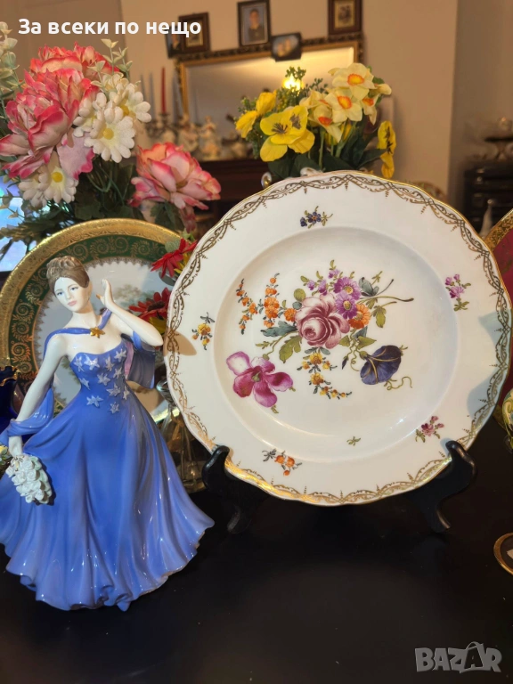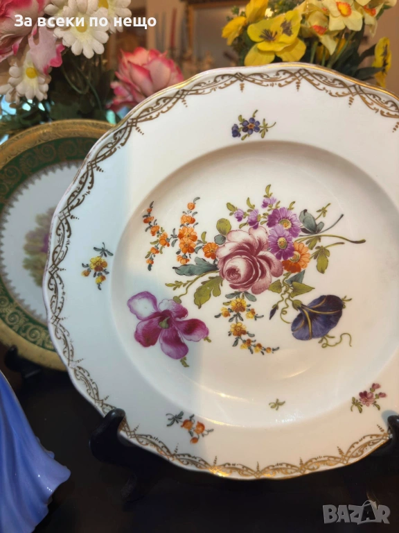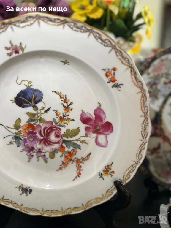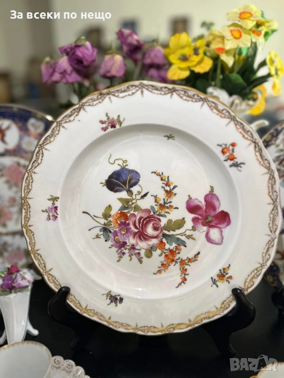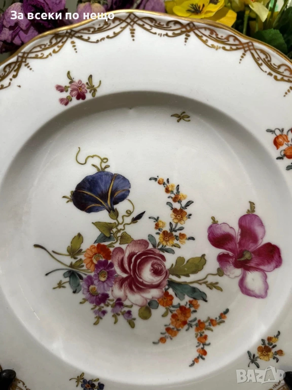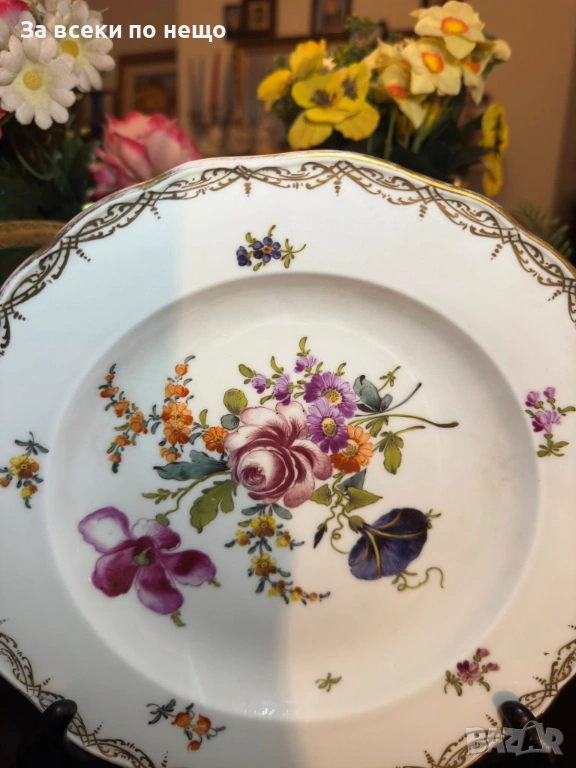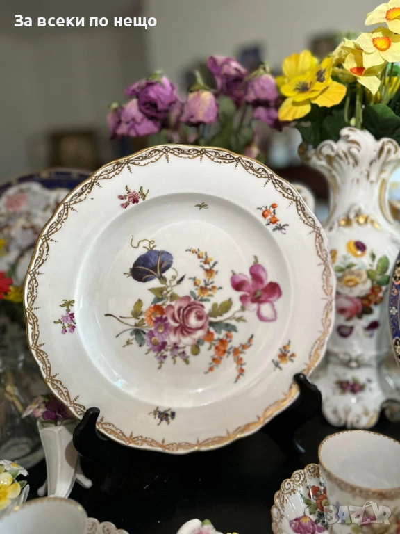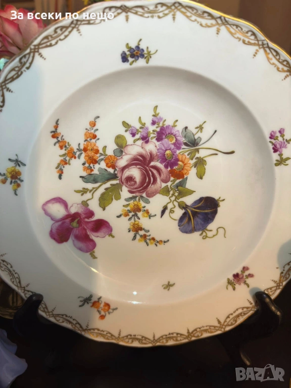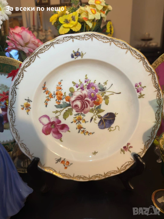 Meissen Germany забележително плато с производство от 19 век, , немска феерия от красота и великолепие, безспорен лидер на авторски и ръчно рисуван порцелан, ненадминат шедьовър и безценен екземляр на класа и изящество, 26 см отлично качество и винтидж състояние.