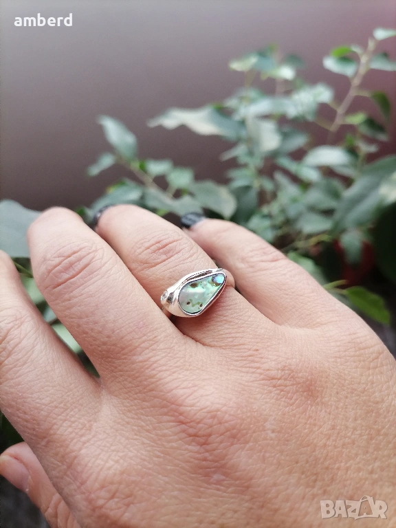 Страхотен пръстен, изработен от сребро проба 925, 1бр цирконий и седеф. Вътрешен диаметър 17мм. Тегло - 3.40гр.